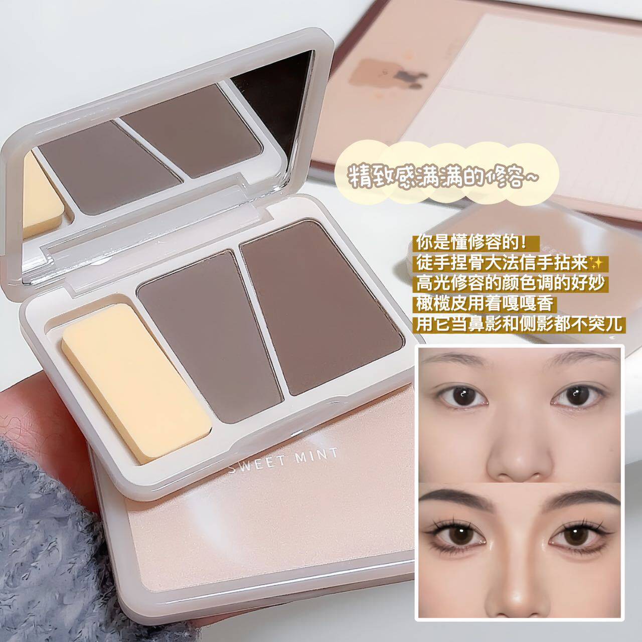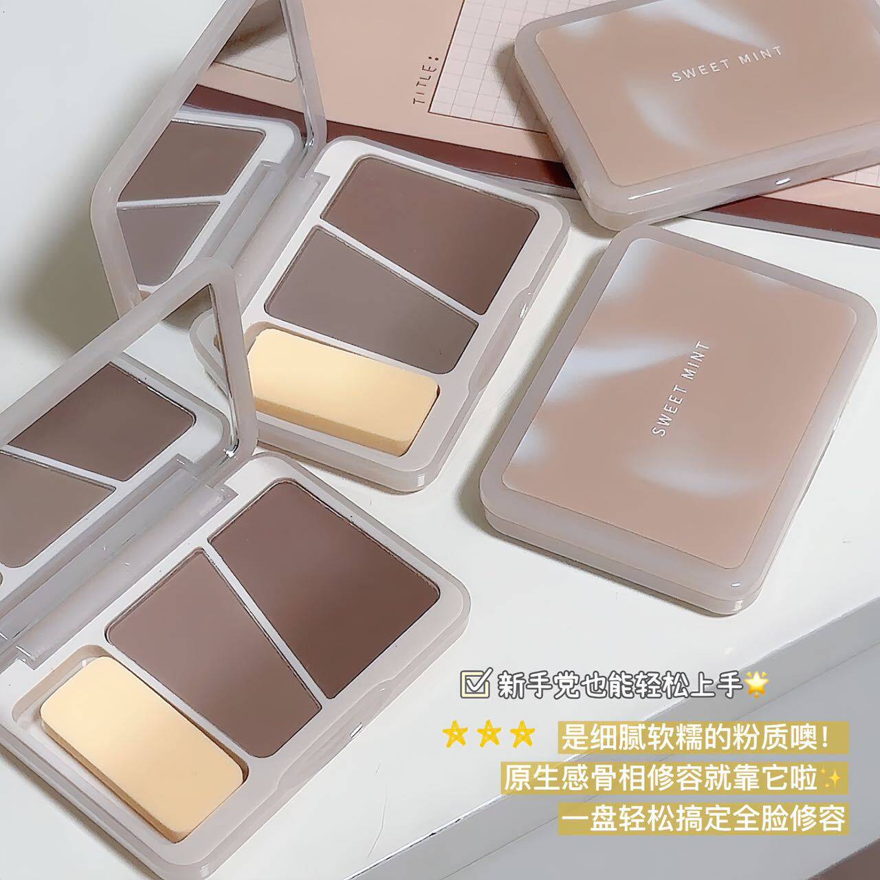 TikTok, двухцветный хайлайтер для контуринга, тени, спонж, 2 в 1