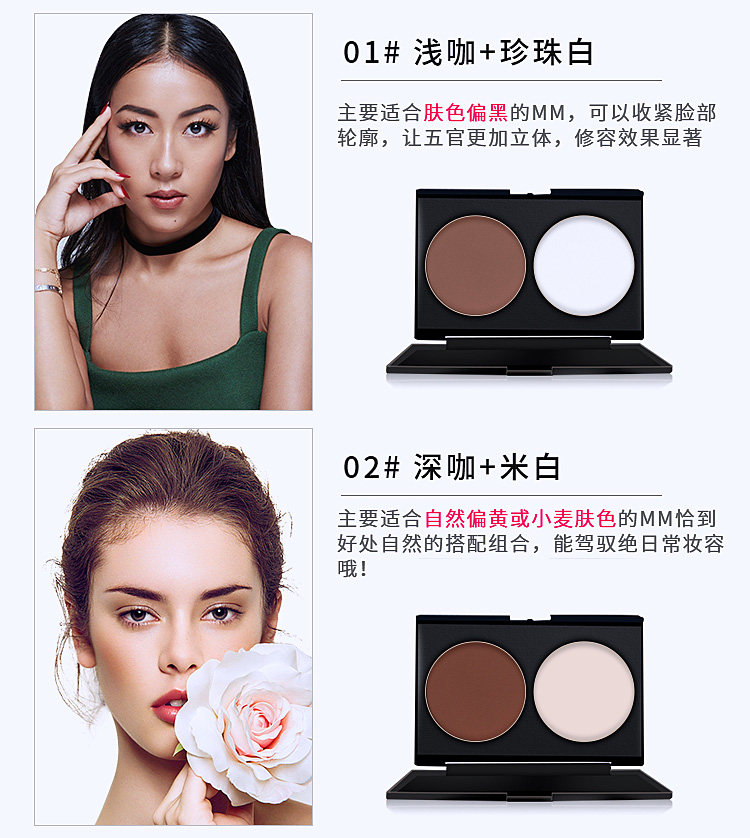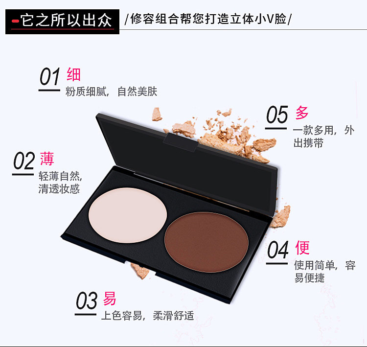 Двухцветная палетка для конкурирования, пудра, хайлайтер для лица, тени для контуринга, тональный крем, четыре цвета, комплект, коррекция силуэта
