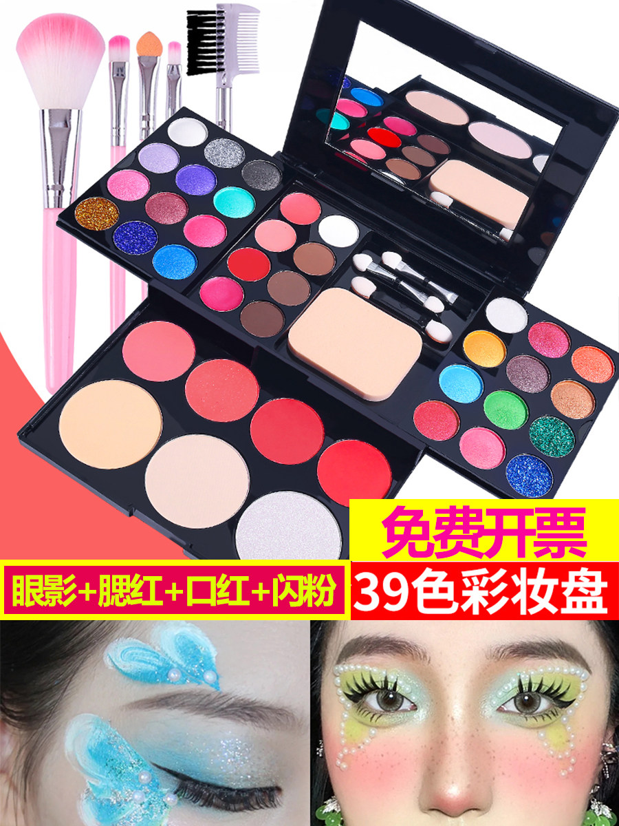 Тени для век, детская палитра, комплект для начинающих, румяна, 39 цветов