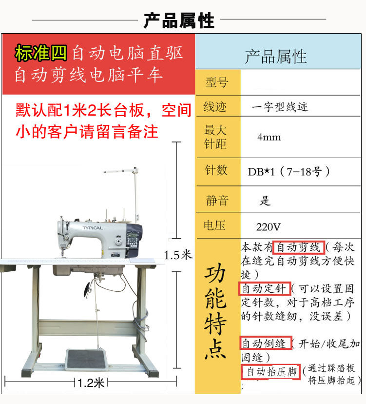 Информация о продукте: Швейная машина с высокой скоростью в промышленном компьютере (по умолчанию является версия среднего размера, если вам нужно взять высокую версию материала, обратите внимание).Максимальная скорость шитья: 5000 об/мин/минута