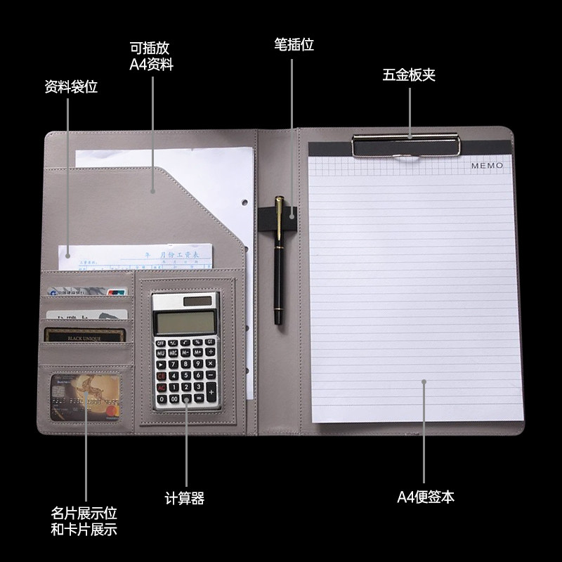 Буфер обмена файлов формата А4, многофункциональная информационная папка, кожаный зажим для менеджера, консультант по бизнес-продажам, консультант по недвижимости рассказывает об одной папке, подписывает книгу, блокнот для письма, канцелярские товары, портфель, сумка для хранения, настраиваемый логотип