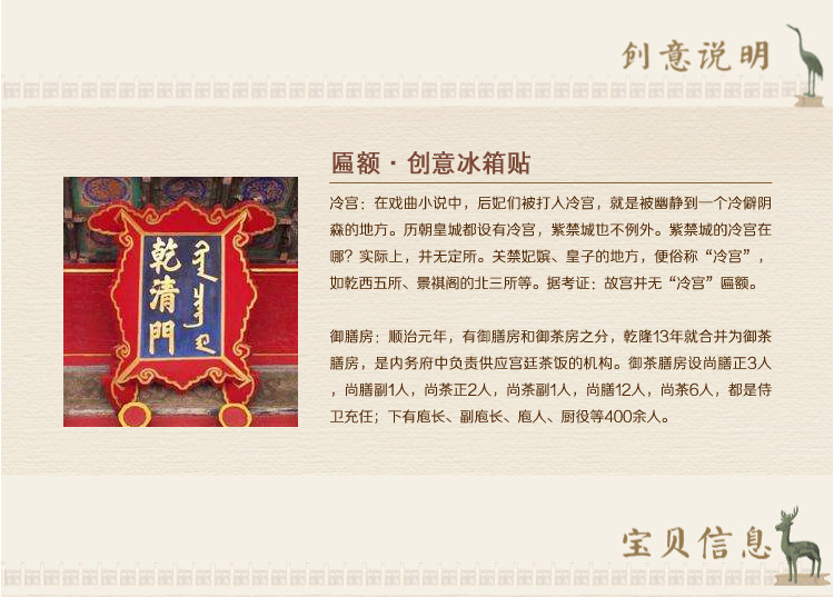 三舍 Хороший продукт Пекин Запрет Городской холодильник наклейка Cold Palace Imperial Kitchen Laste Plain Cartoon Cite китайский стиль доска объявлений