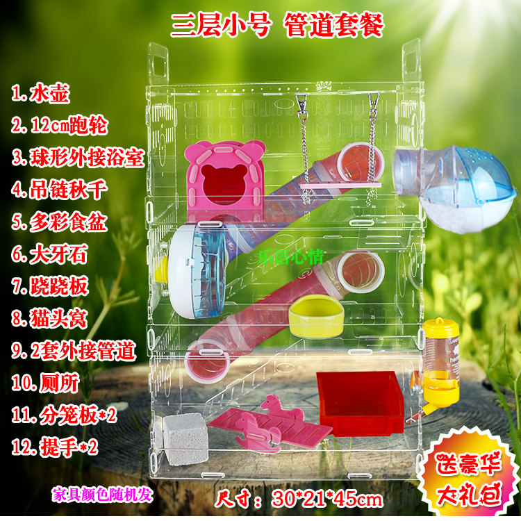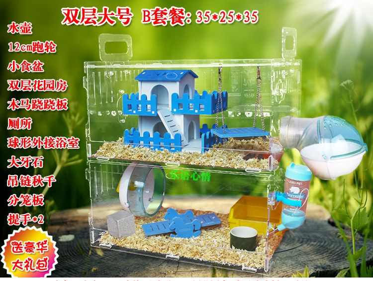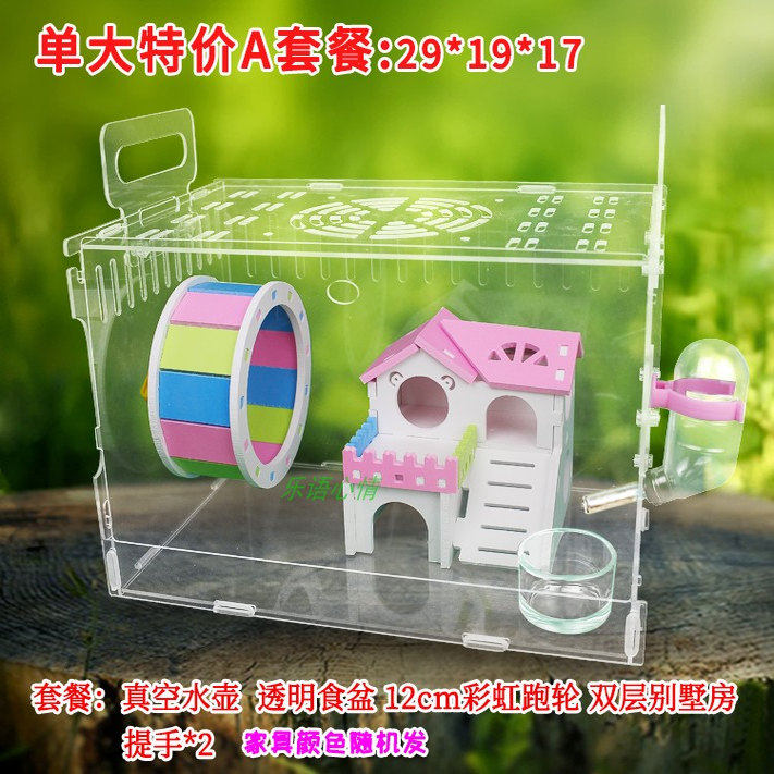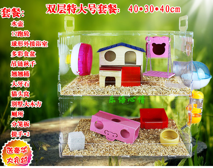 Клетка хомяка Акрил прозрачная клетка с двумя лесными виллами поставляет золотистое шелковое медведь супер большую клетку роскошную клетку