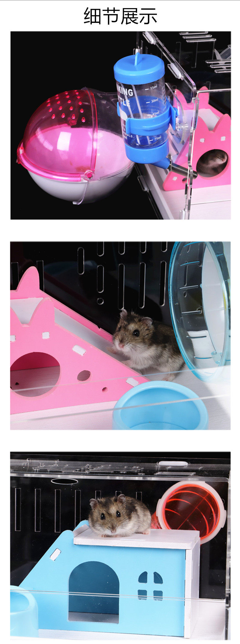 Yayrich Hamster Cage Golden Silk Bear Bear Beart Внешняя ванная комната двойная слоя негабаритная вилла пакет