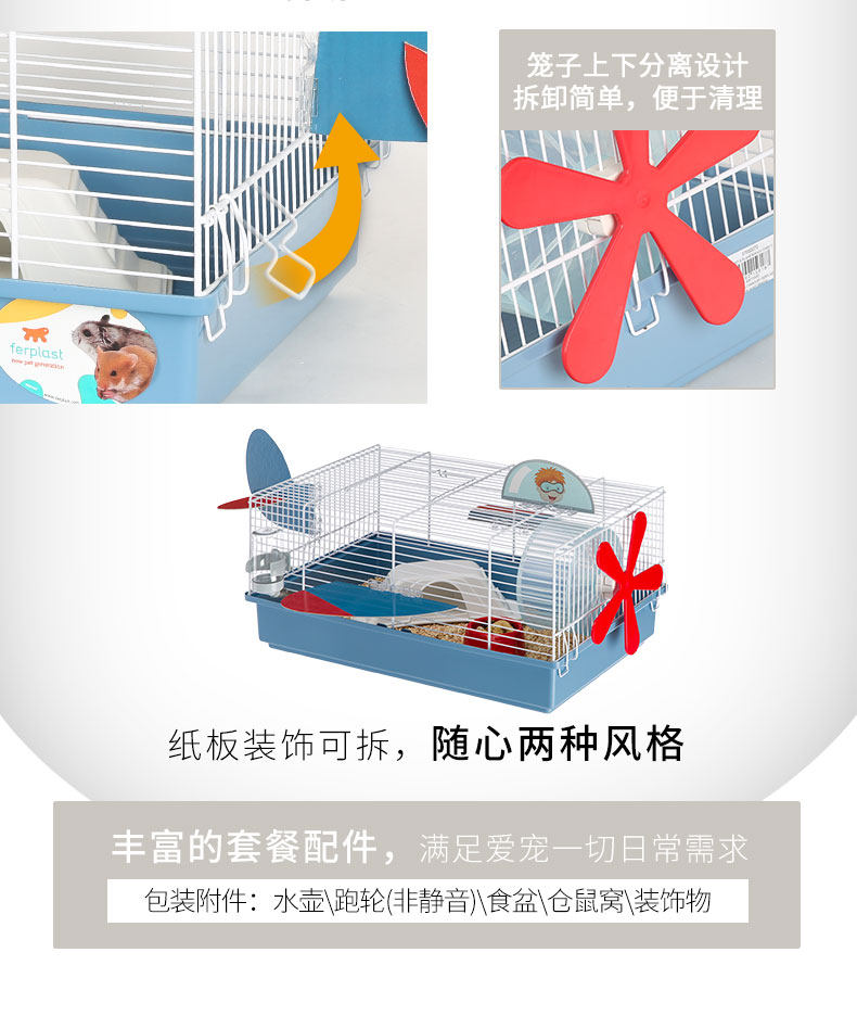 FERPLAST FEIBAO HAMSTER CAGE IRON WIRE SUPER VILLA Golden Wire Bear Live Cage Diy Suite Complete