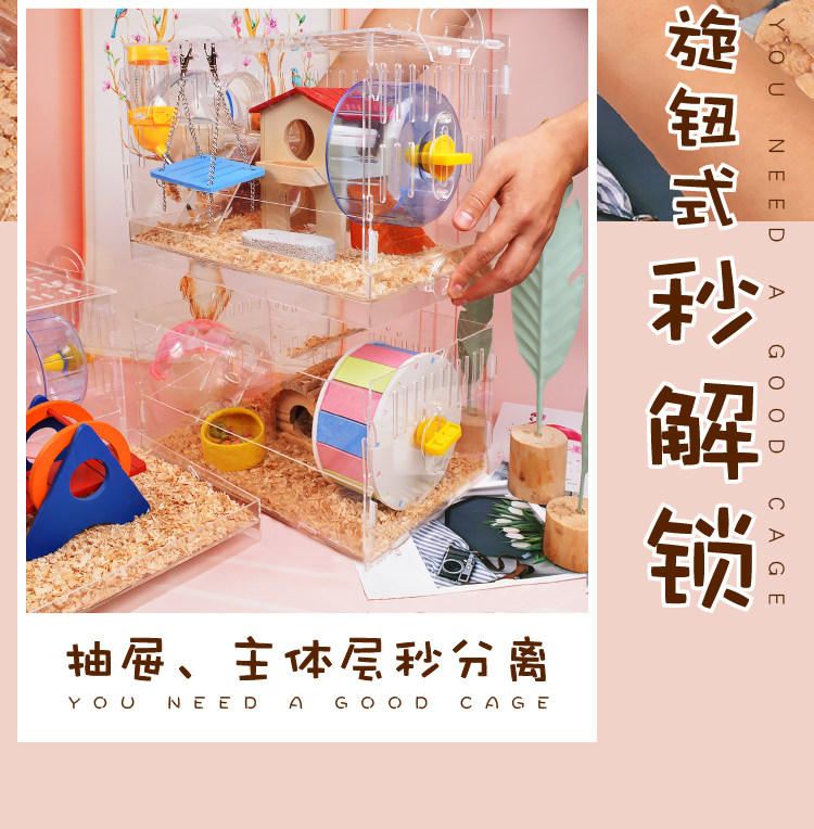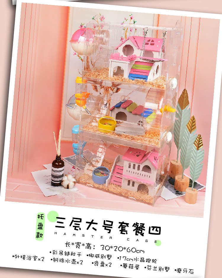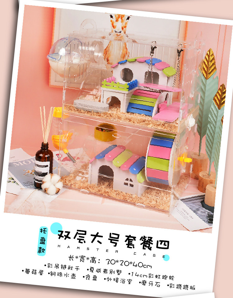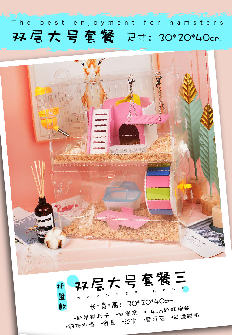Клетка для хомяков лоткового типа, акриловая, двухслойная, очень большая, клетка-гнездо для виллы, комплект поставки, полный набор живых животных плюс