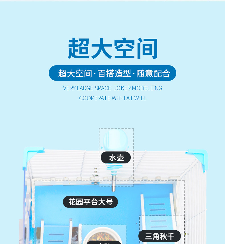 Pet Sky Hammer Cage 47 Акриловая прозрачная базовая клетка золотой шелковый медведь Live 60 Super Big Villa House House