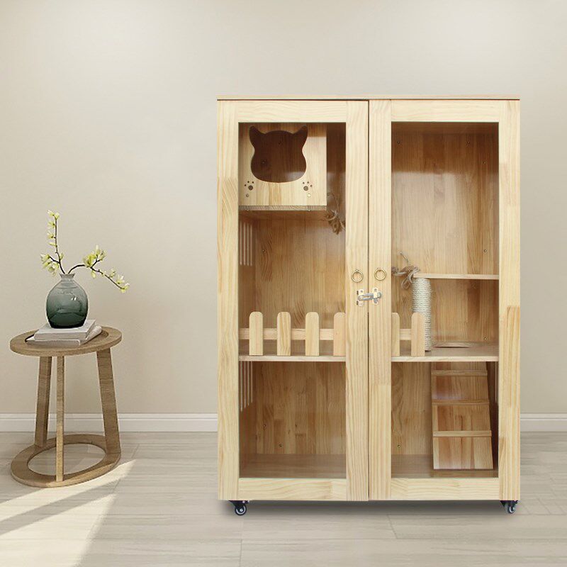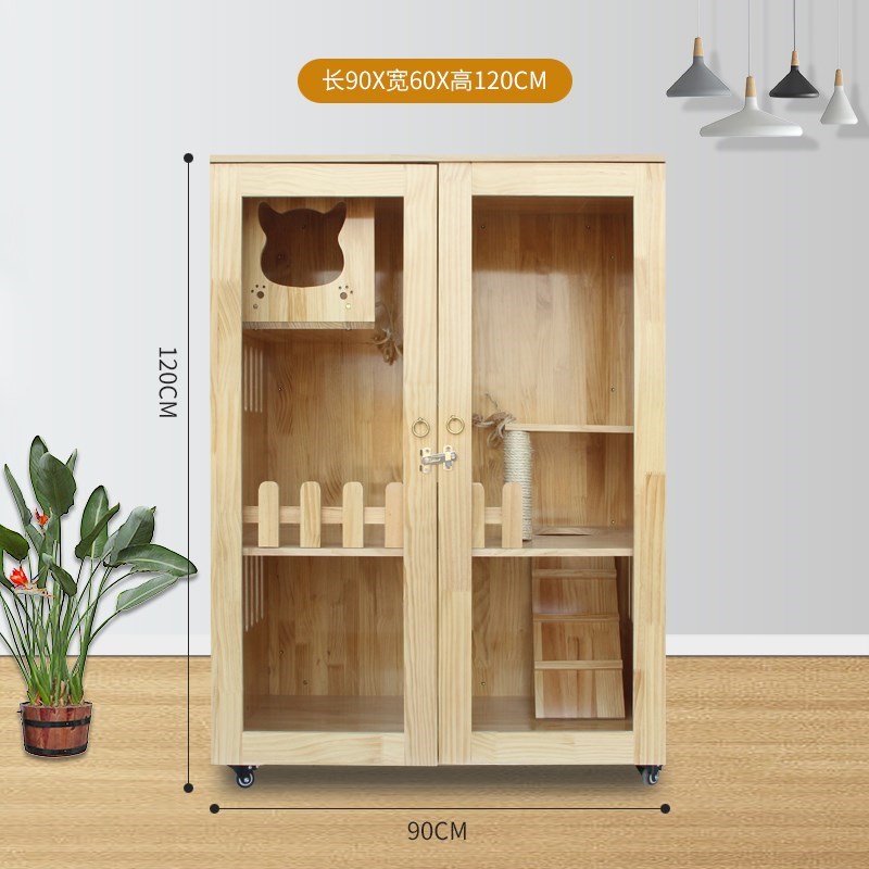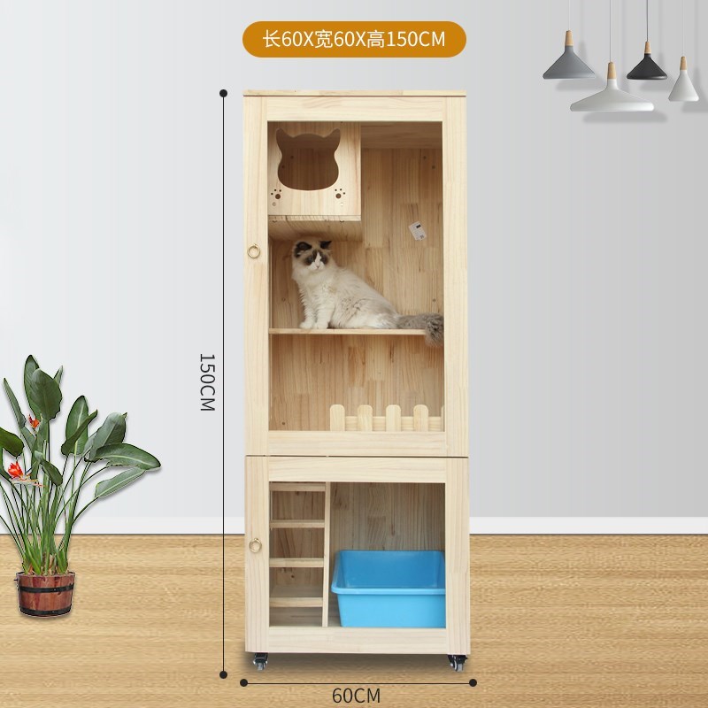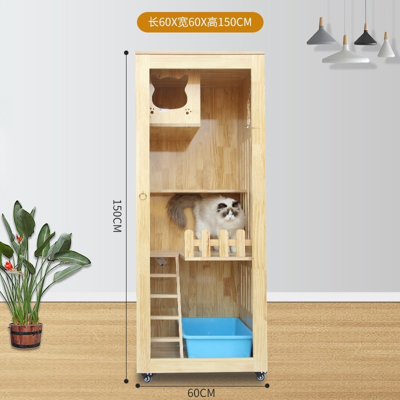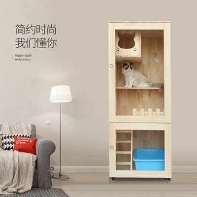 Сплошная древесная кошачья клетка Домохозяйственная кошка вилла из трех слоя роскошной двойной кошачьи шкаф с туалетом с большими размножающимися котятами Cage Большое пространство