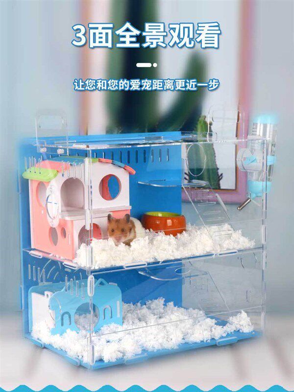 Верх с клеткой для хомяка с двумя слоями клетки -акриловые золотые медведя Ультра -популярные роскошные цветочные ветви и крысы для размножения коробки