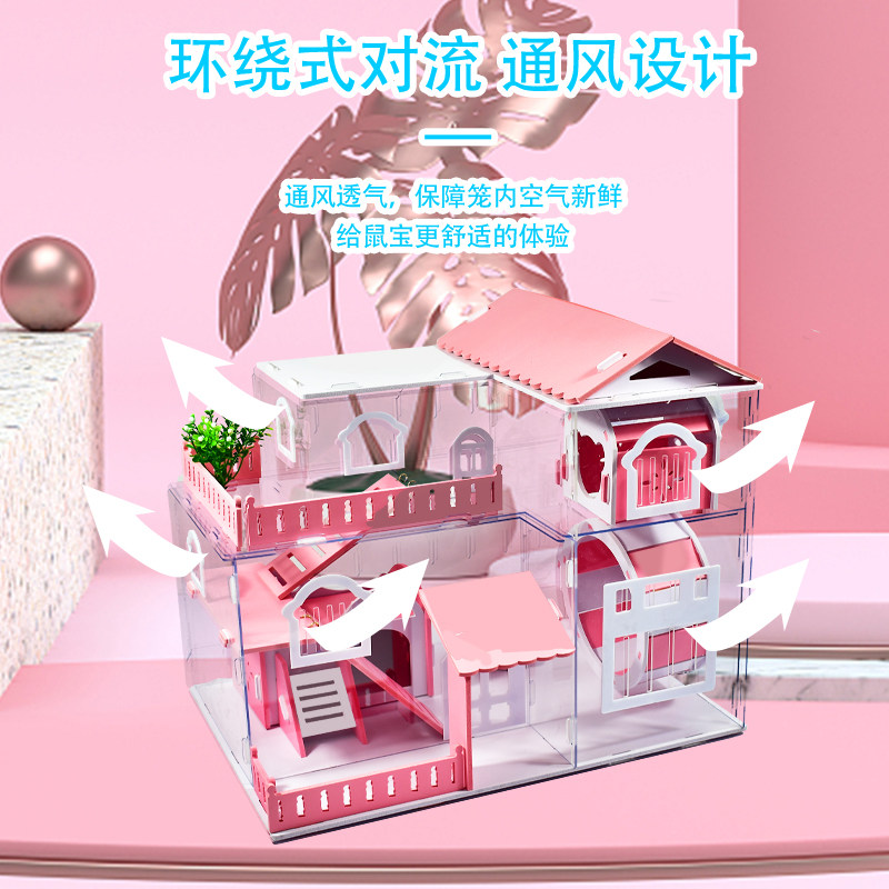 Хаммел клетки акриловой прозрачный двойной слой негабаритный фонд виллы, небольшая пастырская клетка золото шелковая медведь голландское свиное гнездо