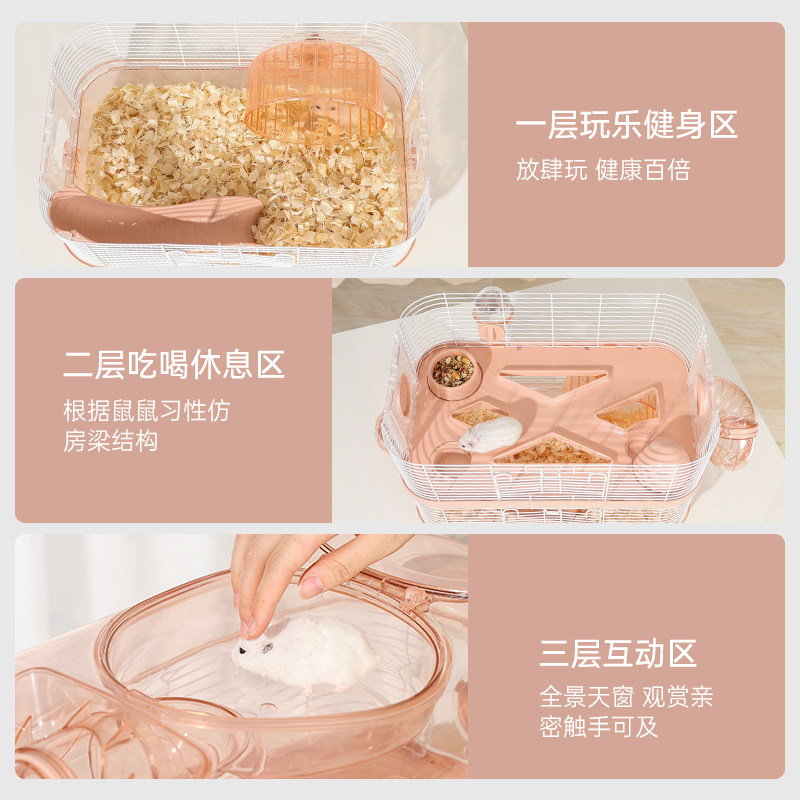 中恒 Hammers Cage Three -Layer Super Large Villa Выделенная прозрачная большая золотая шелковая медвежь
