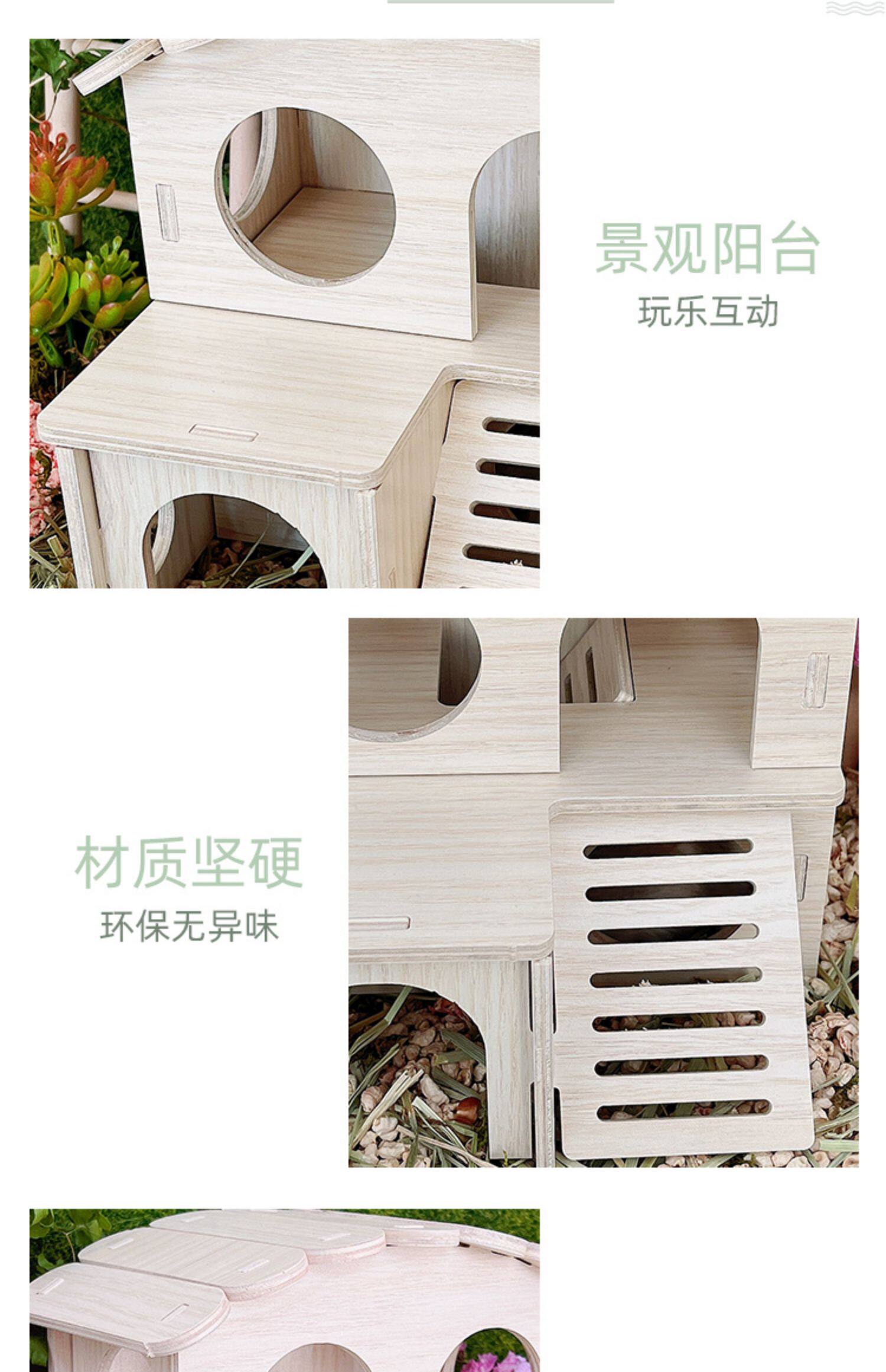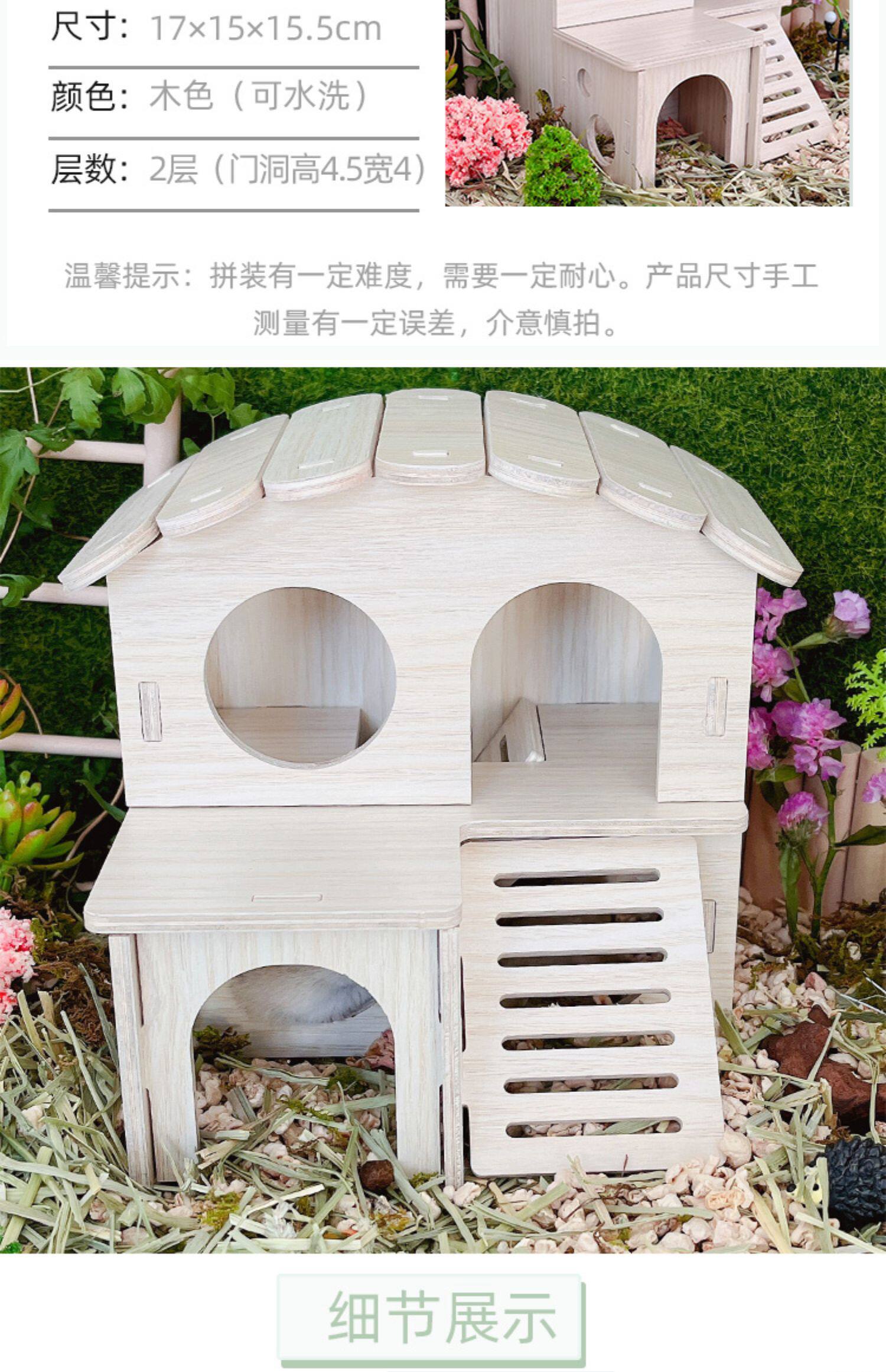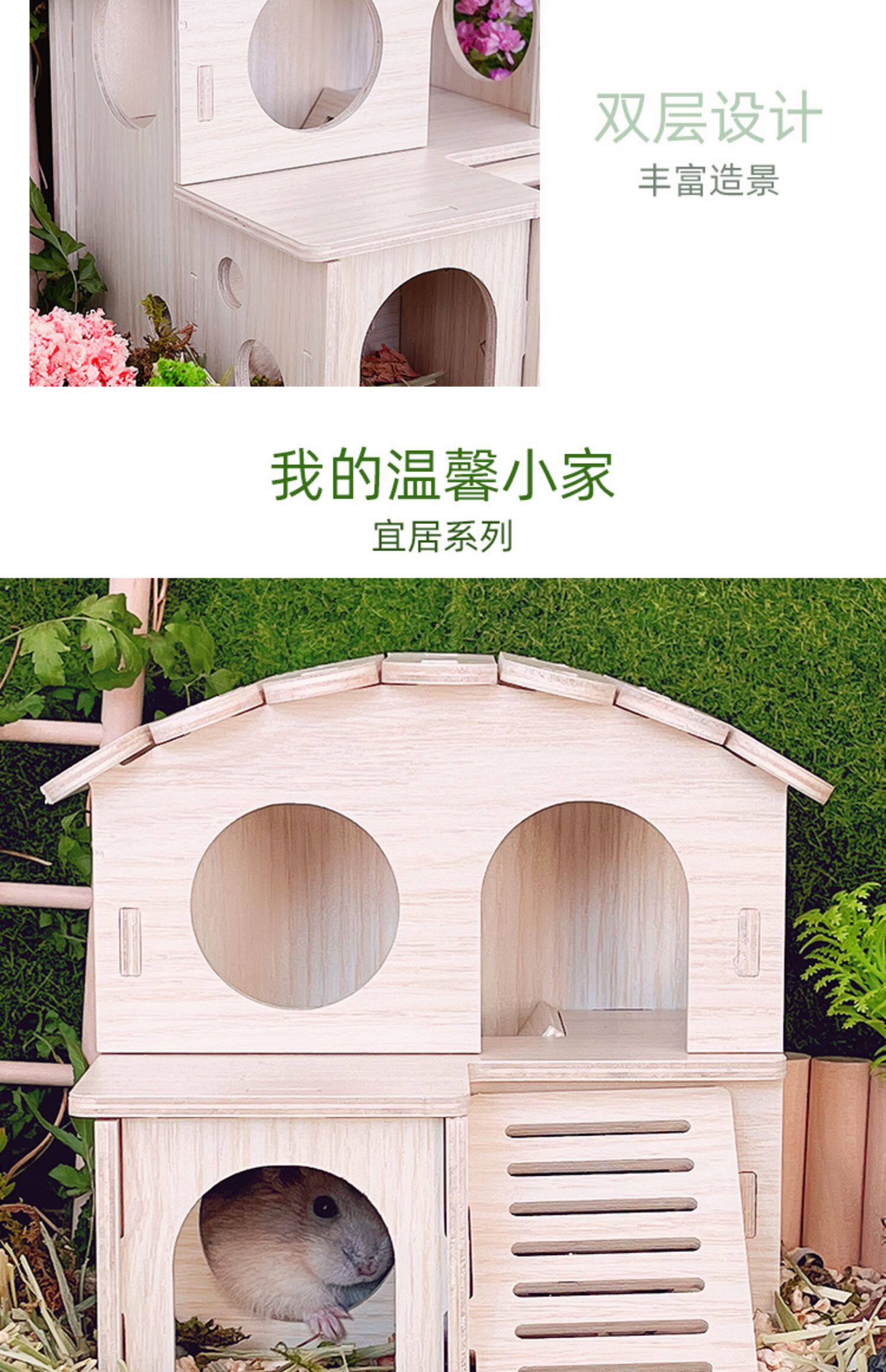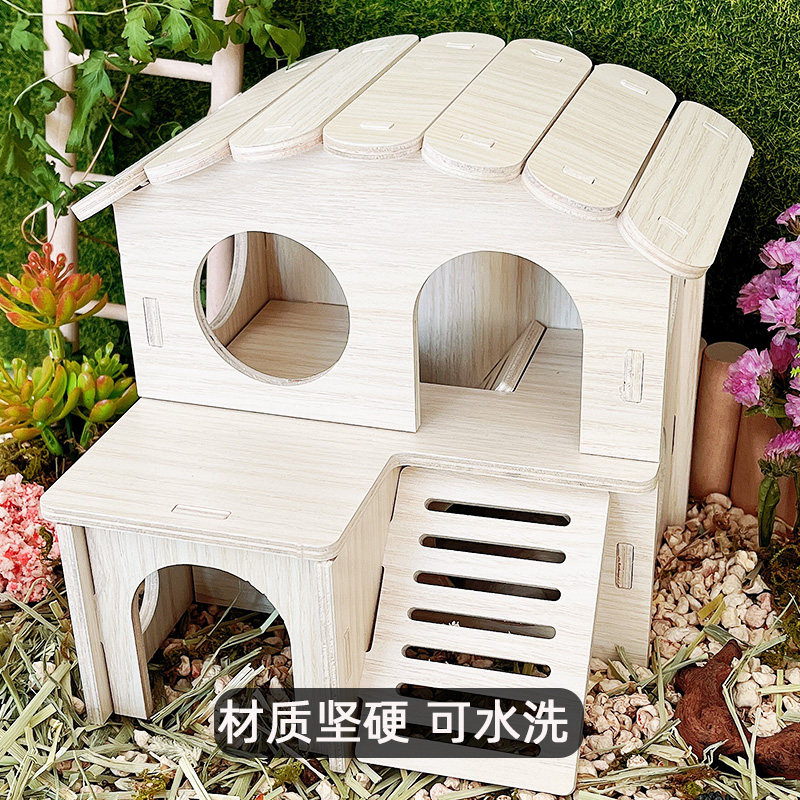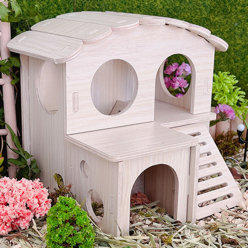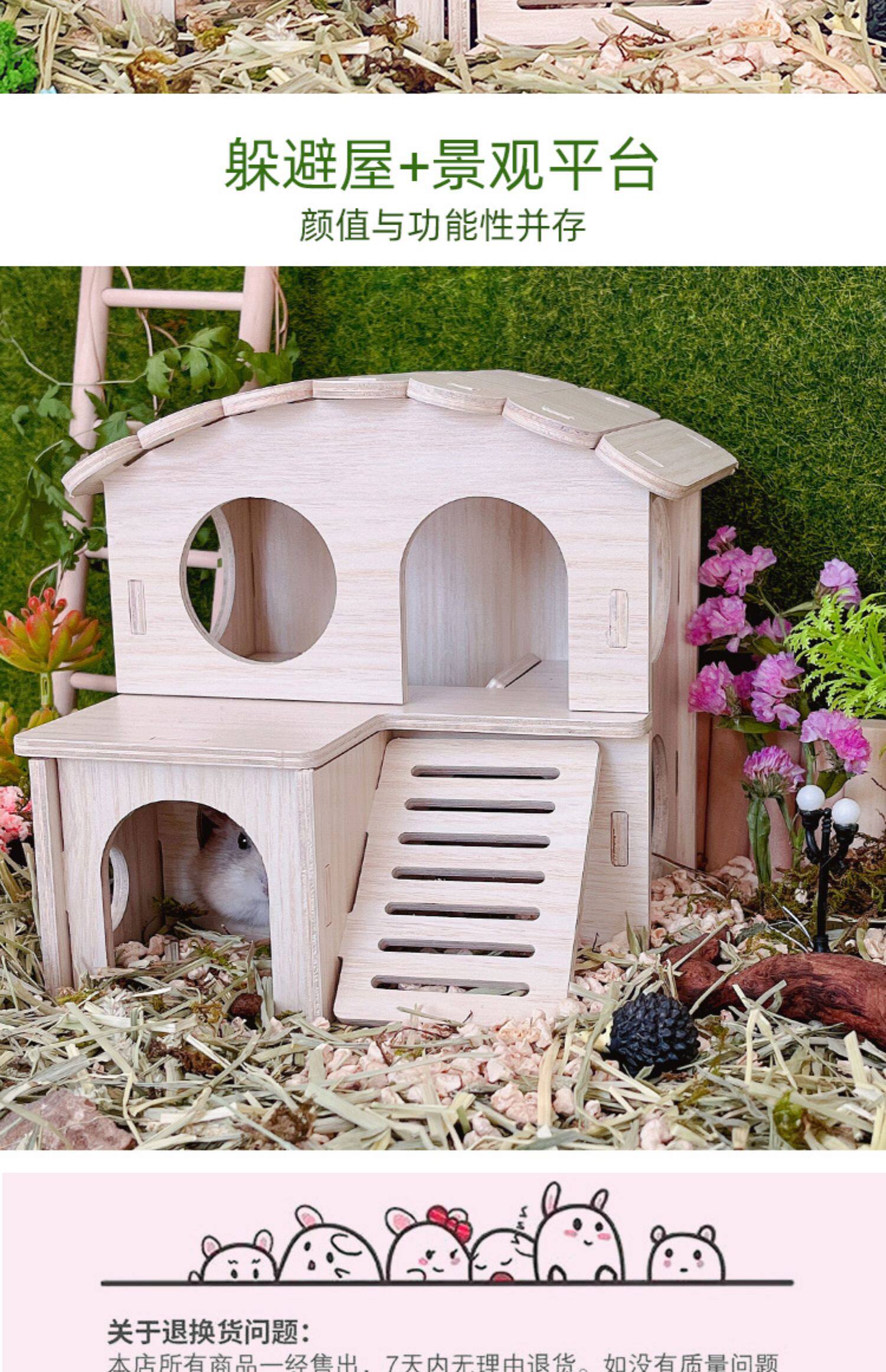Хомять, чтобы избежать ландшафта дома, золотой шелковый медведь с двойным слоем деревянной платформы для медовой платформы 鼯 Маленькие игрушки и деревянный дом