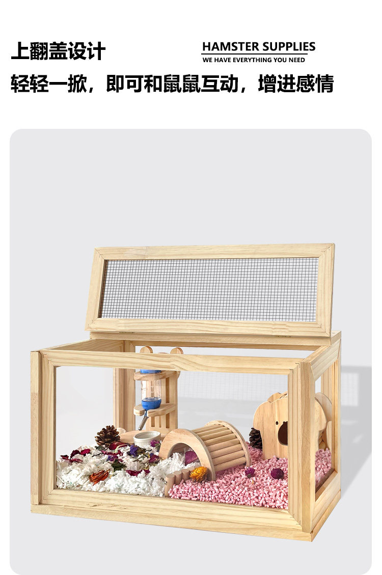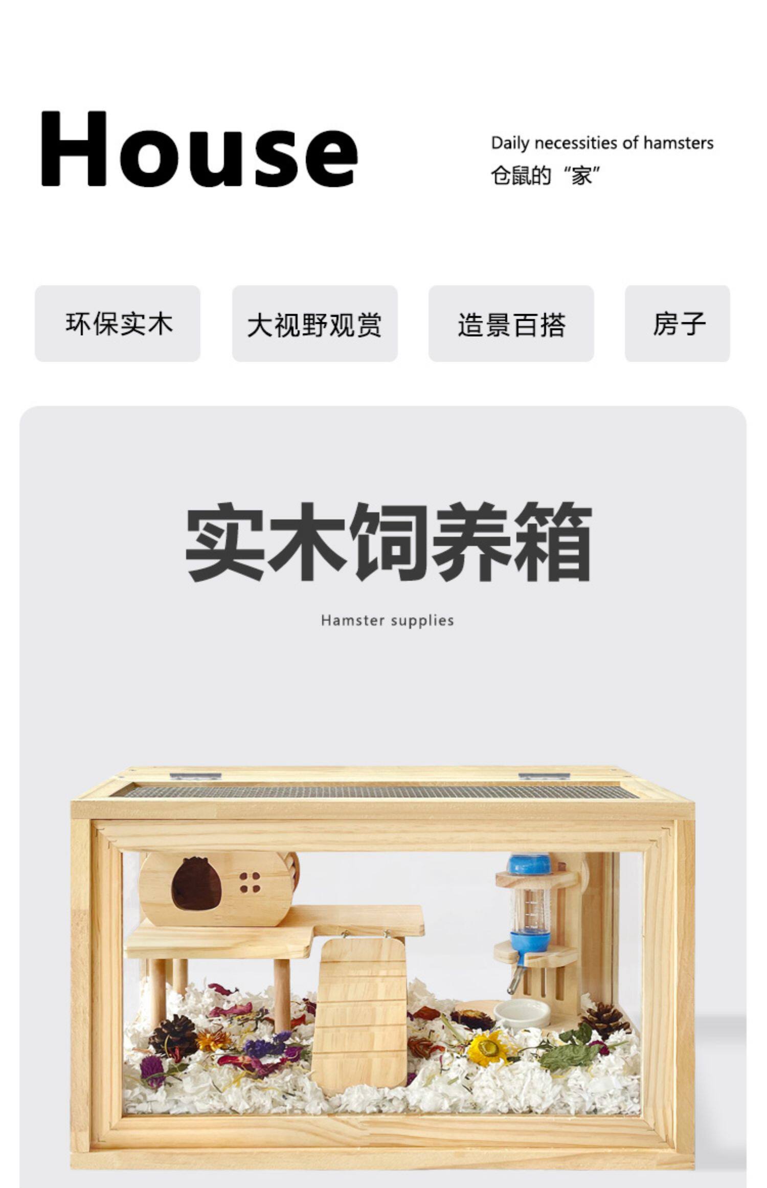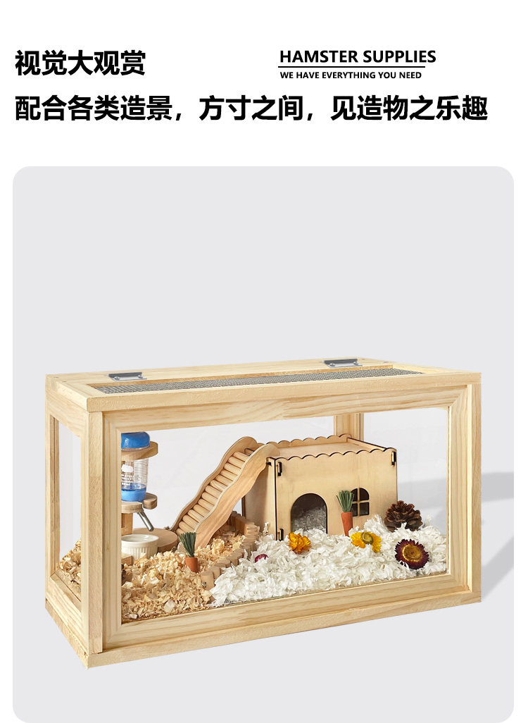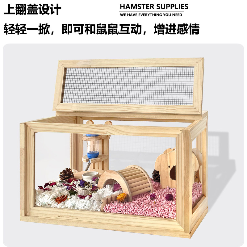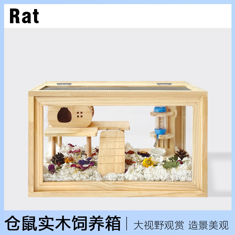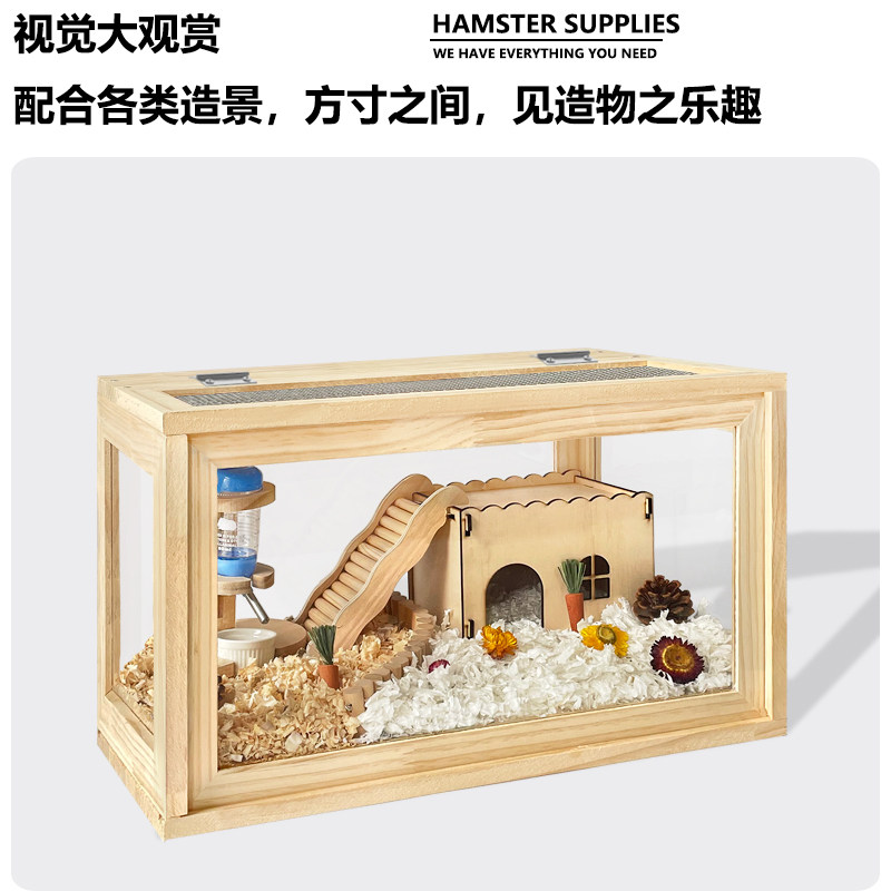 Клетчатая клетка крысы Panoramic Полная прозрачная акриловая древесная декоративная клетка Золотой шелковый медвежь