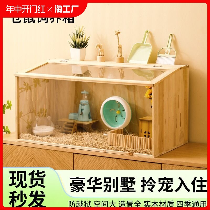 Клетка с твердым деревом Cage дешевая Big Golden Bear Cage Special Box Pet Viewing Landscaping Большая вилла -хомяка Cage