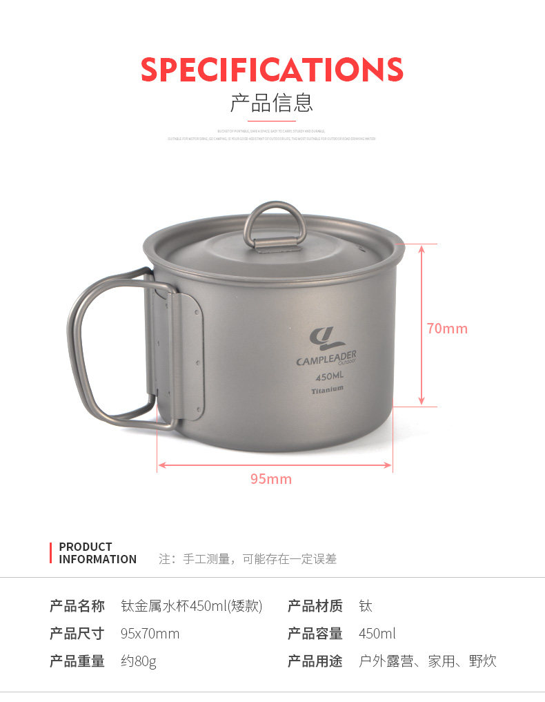 - Титановый водный чашка 450 мл-рам