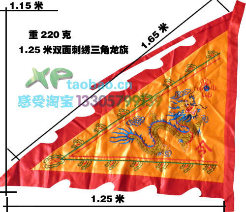 1,5 метра двойной флаг вышивки треугольника -дракона (2,4 метра*1,5 метра*1,35 метра, весом 150 грамм) Цена: 44 Юань
