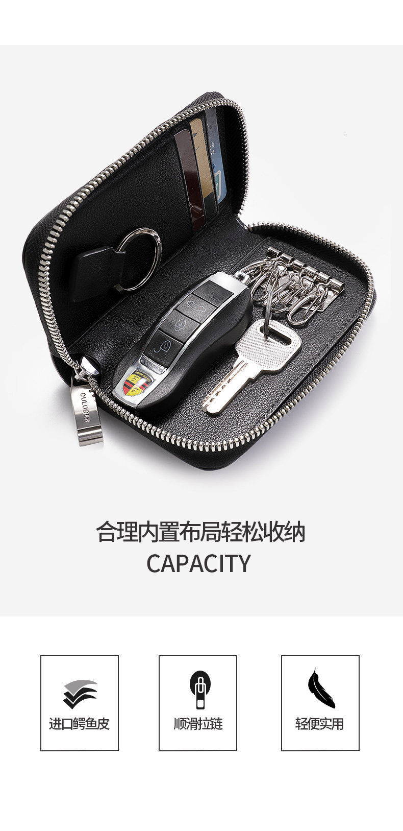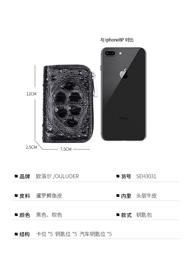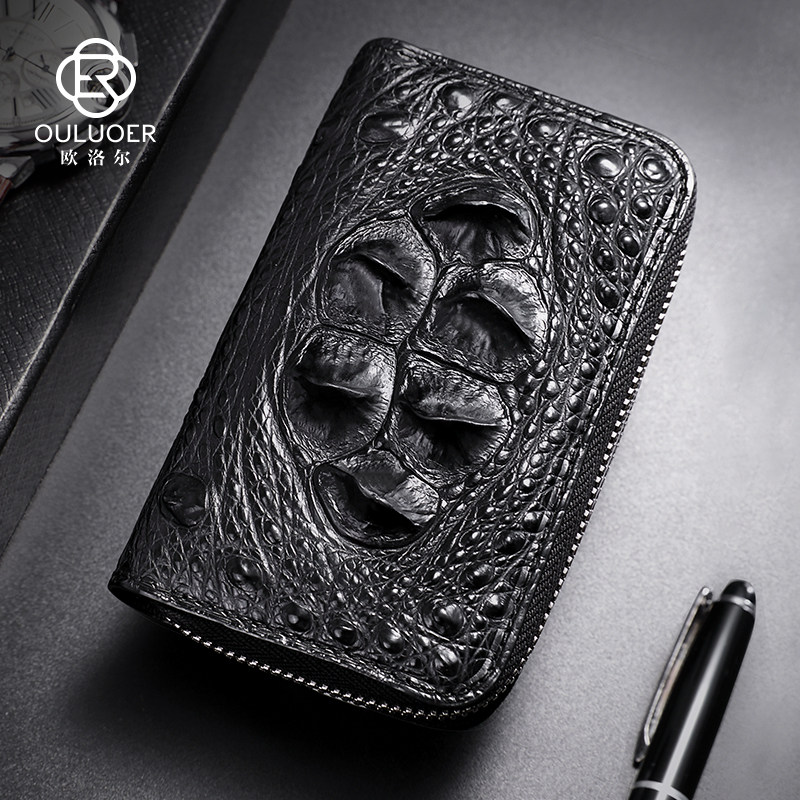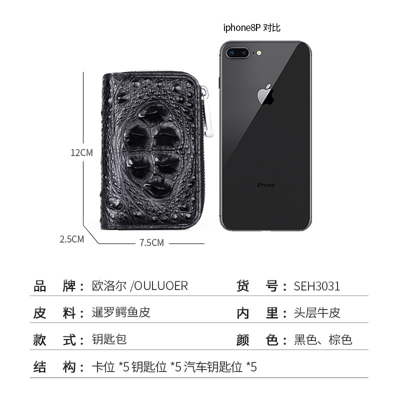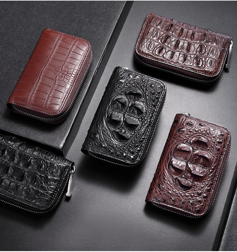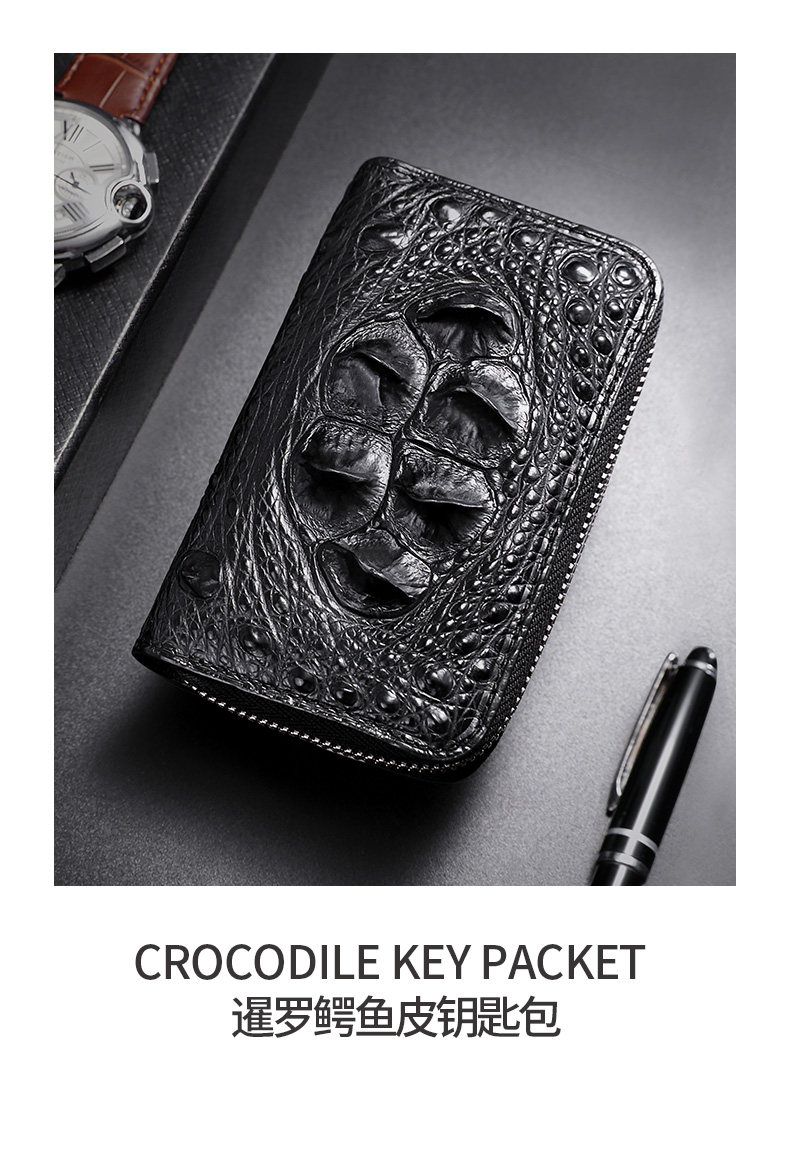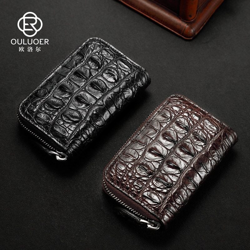 欧洛尔 Вместительная и большая ключница, картхолдер, универсальный брелок с молнией, крокодил, из натуральной кожи