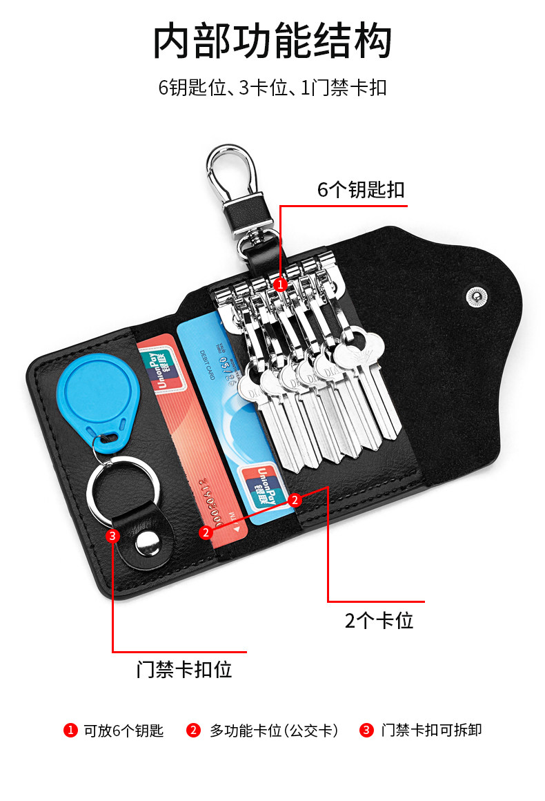 Вместительная и большая универсальная ключница, мужской брелок, кожаный картхолдер, маленькая небольшая сумка