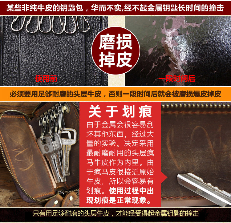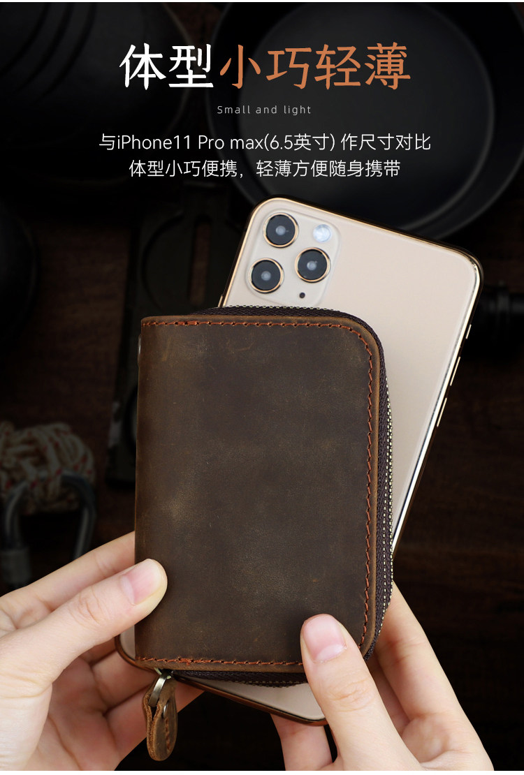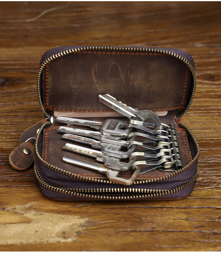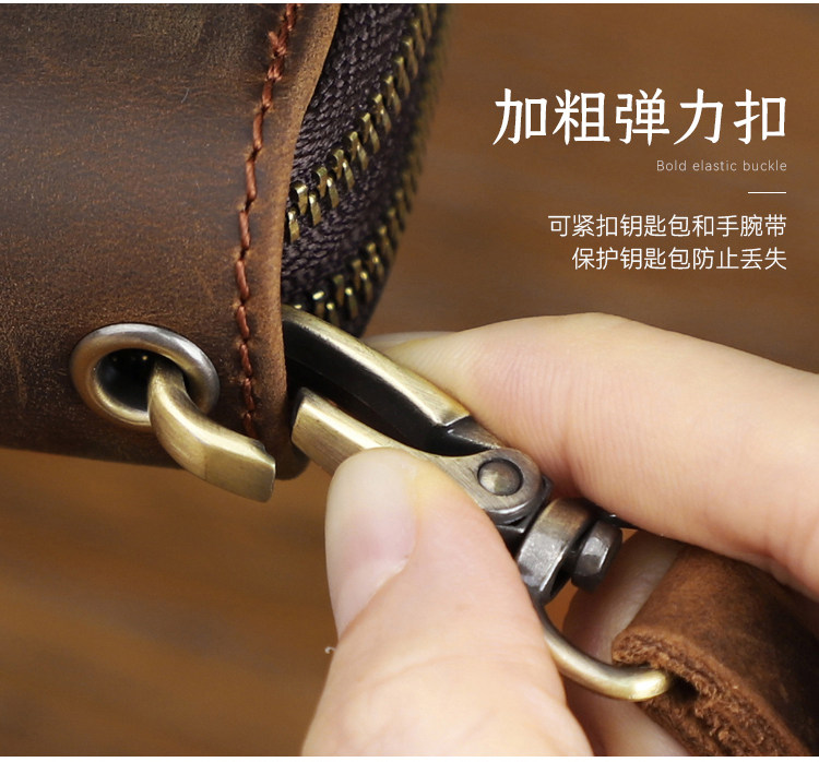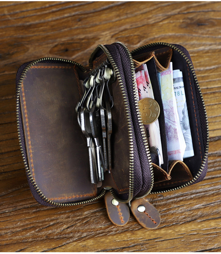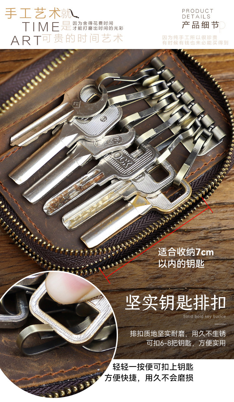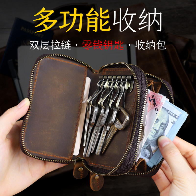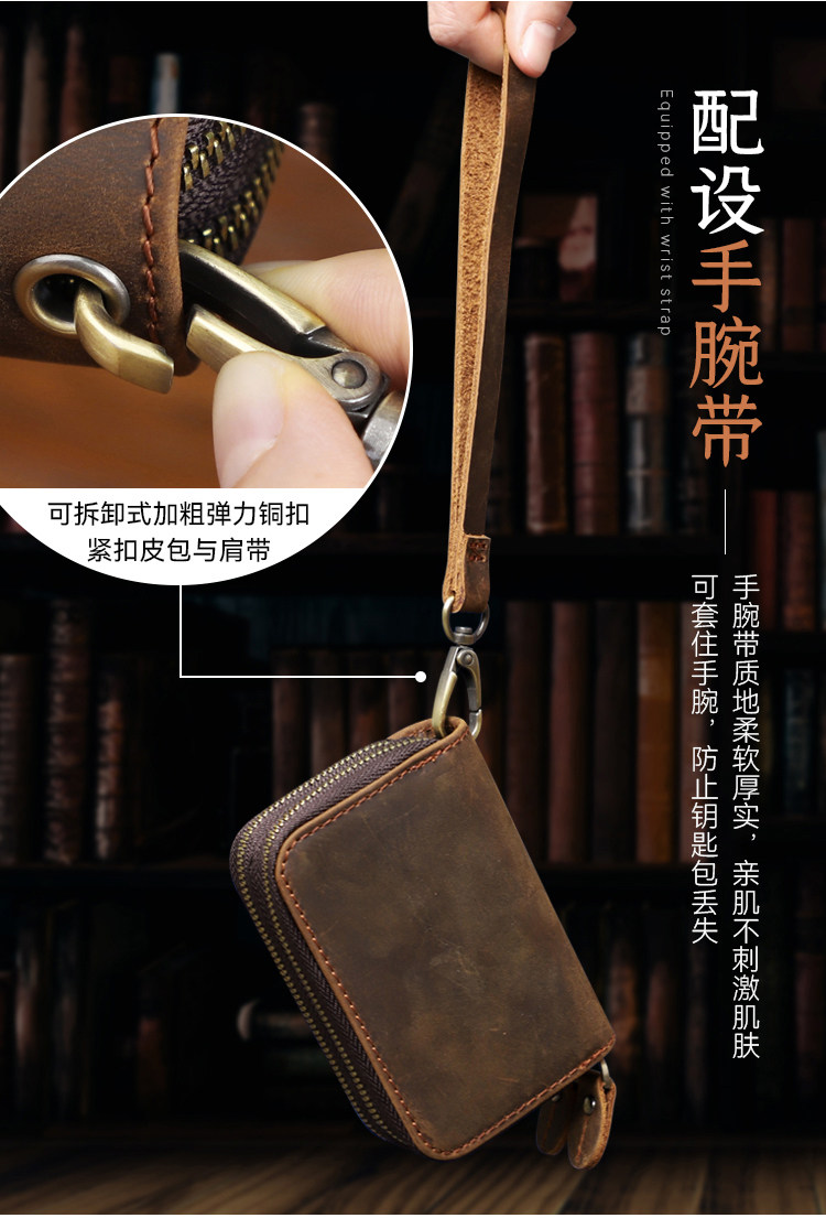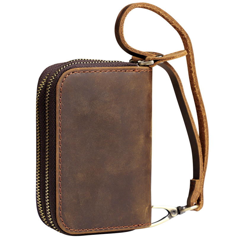 Японская ретро ключница подходит для мужчин и женщин, кошелек, кожаный картхолдер, сумка-органайзер с молнией, сумка с петлей на руку, из натуральной кожи