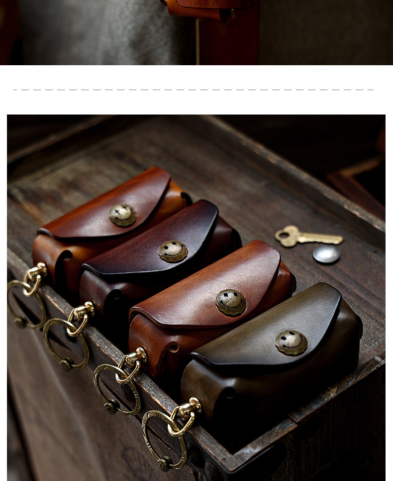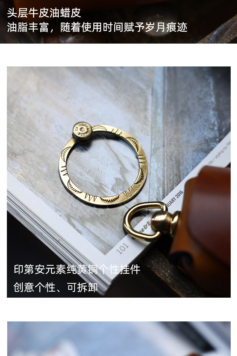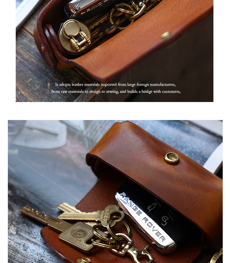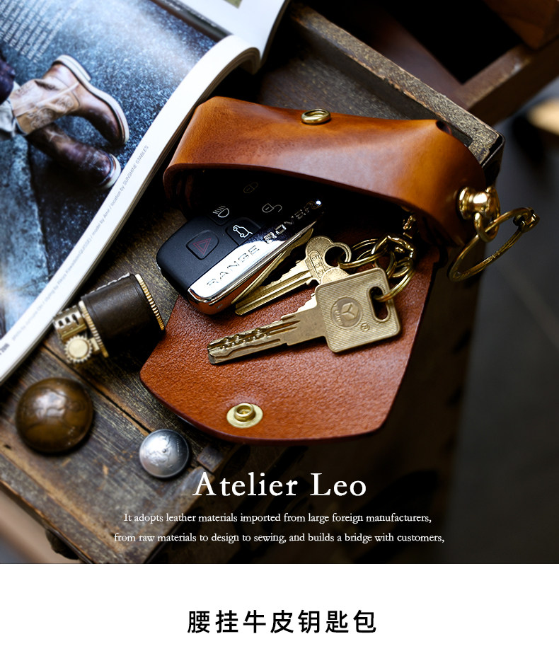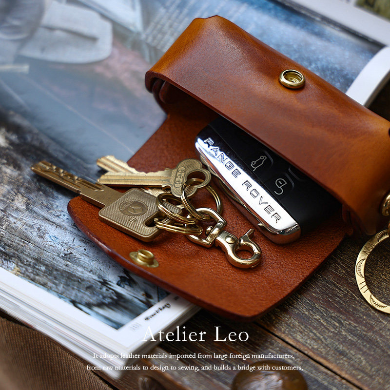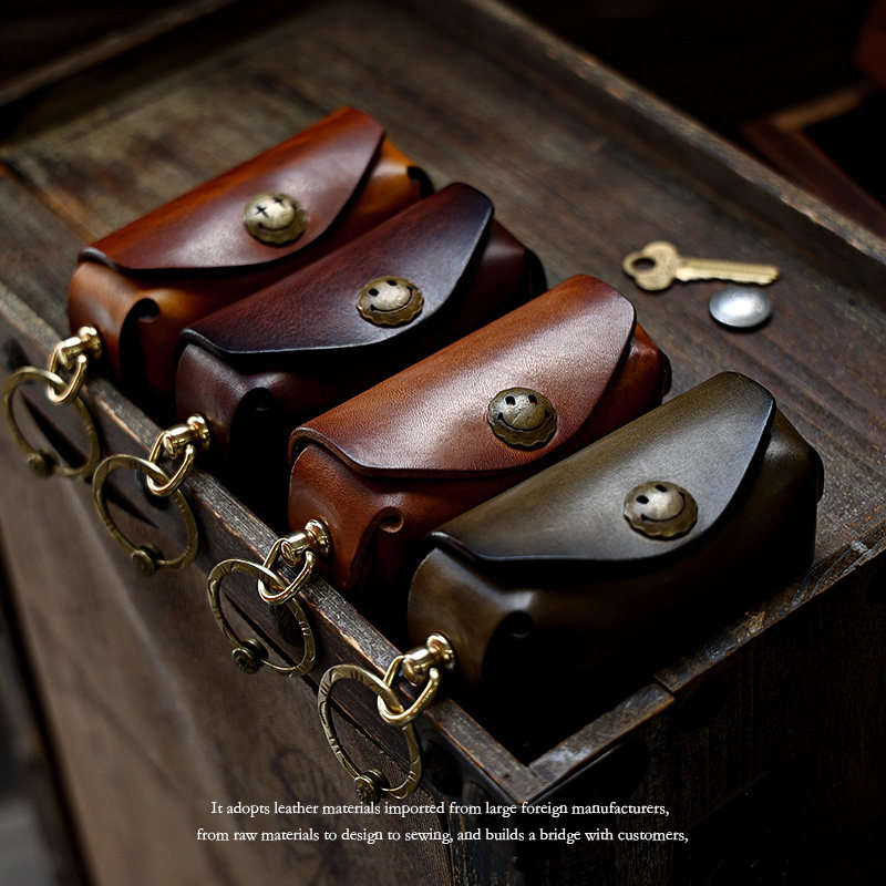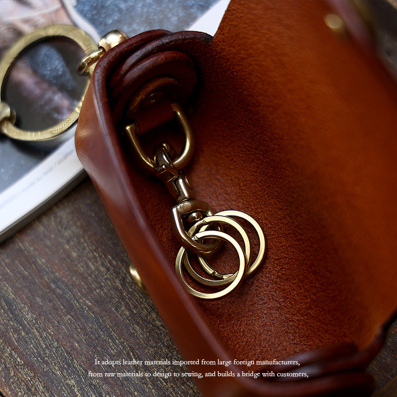 Кожаная круглая ключница, сумка ручной работы, универсальные домашние ключи от машины, воловья кожа, из натуральной кожи