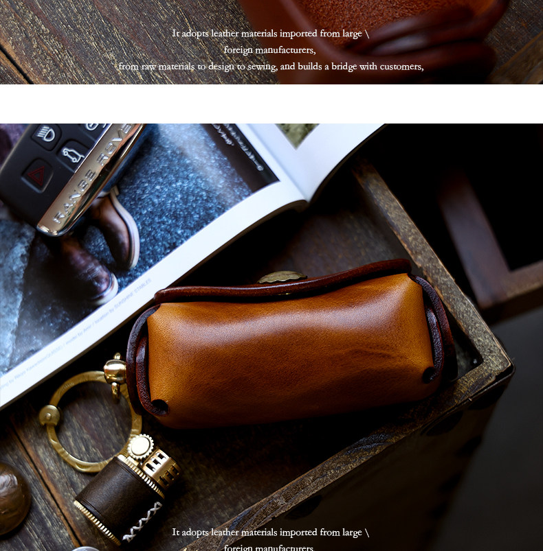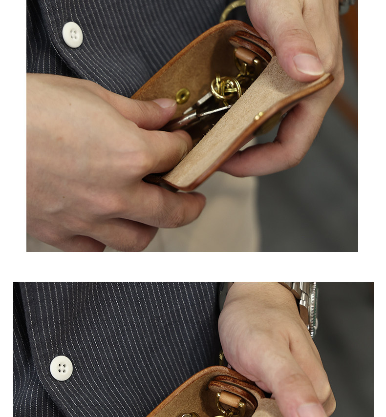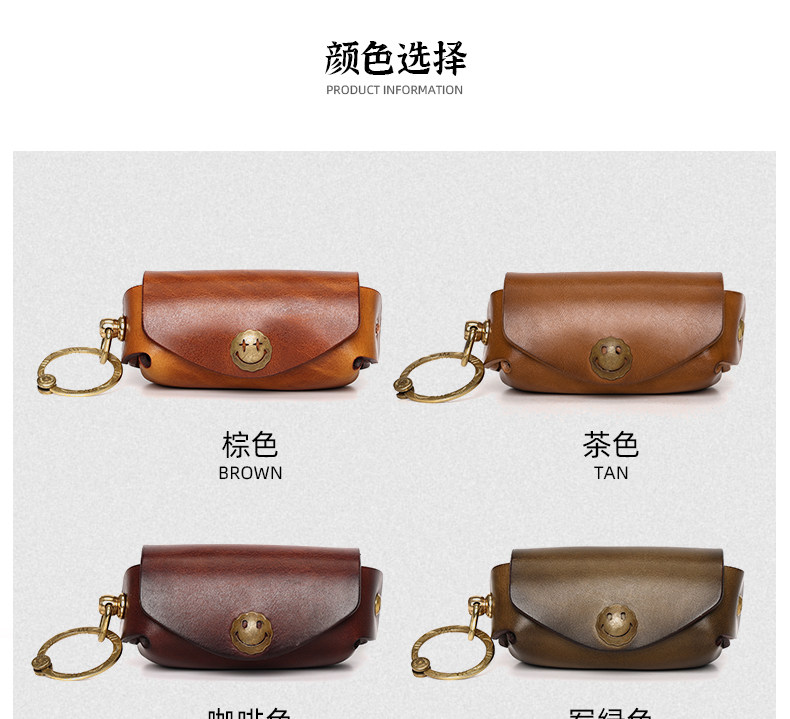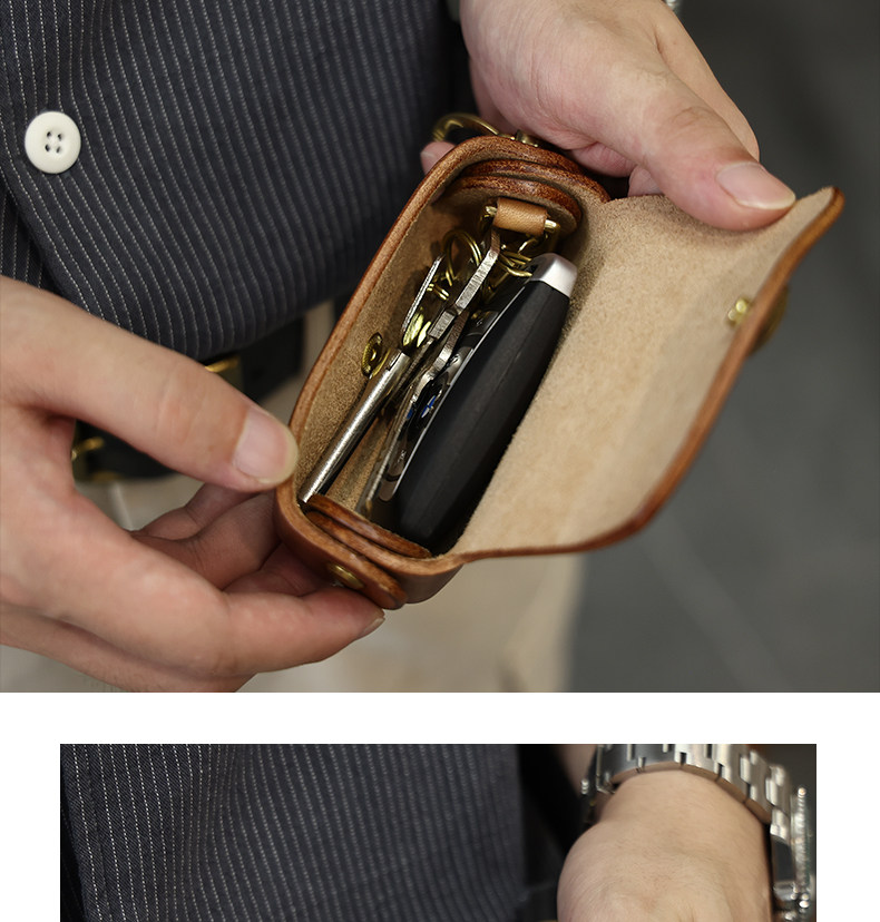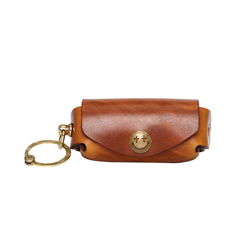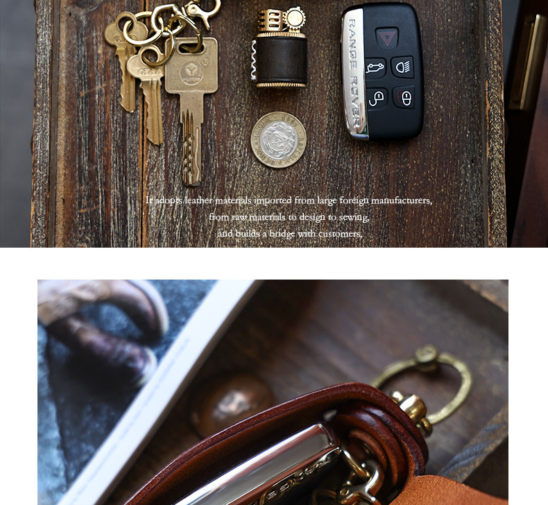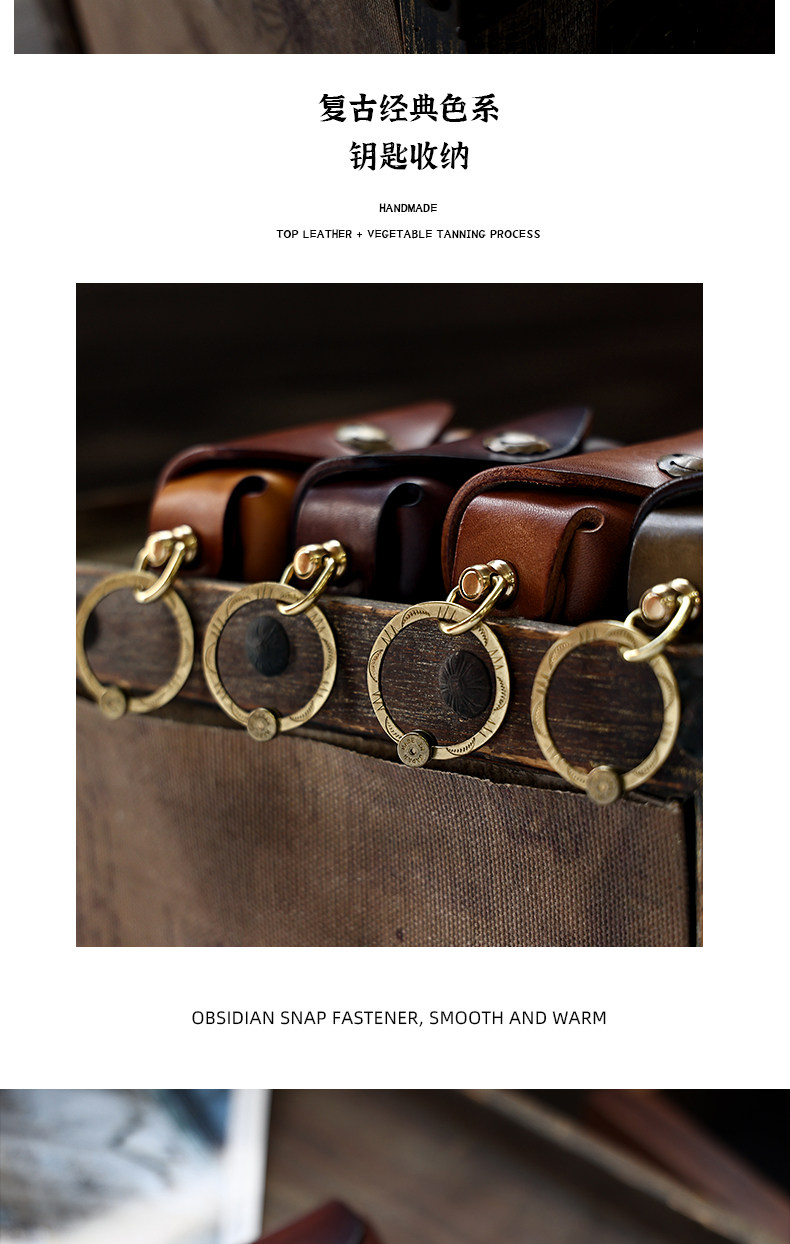 Кожаная круглая ключница, сумка ручной работы, универсальные домашние ключи от машины, воловья кожа, из натуральной кожи