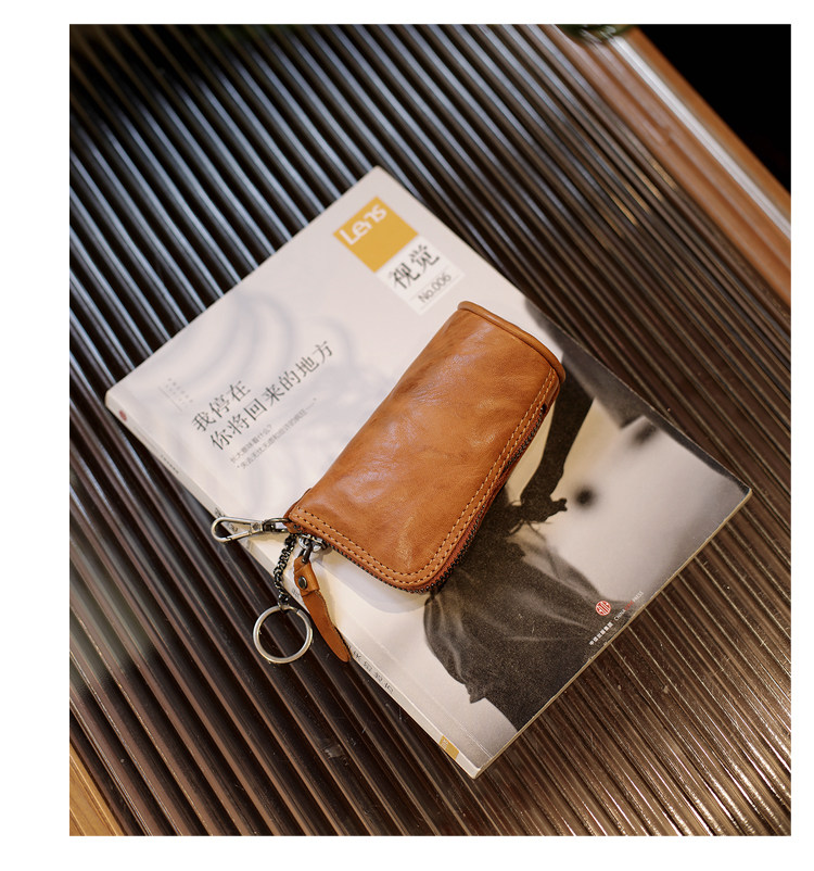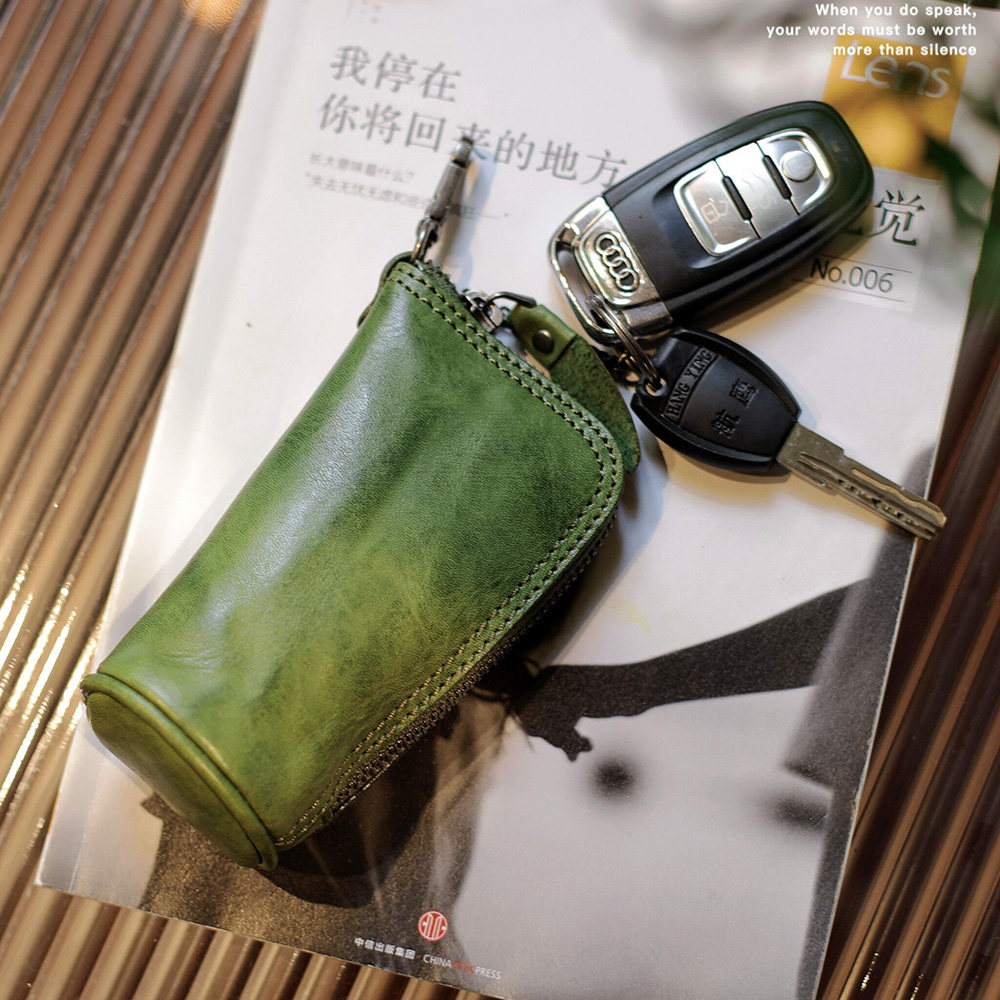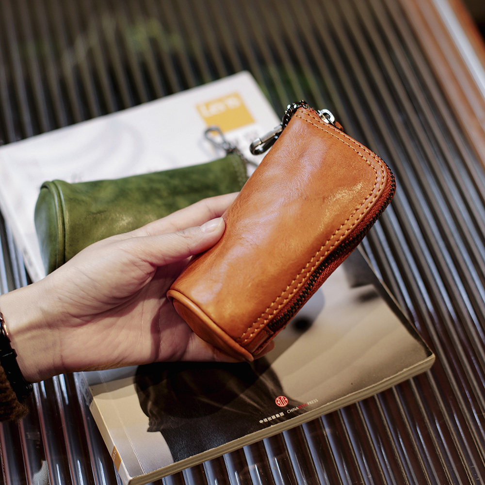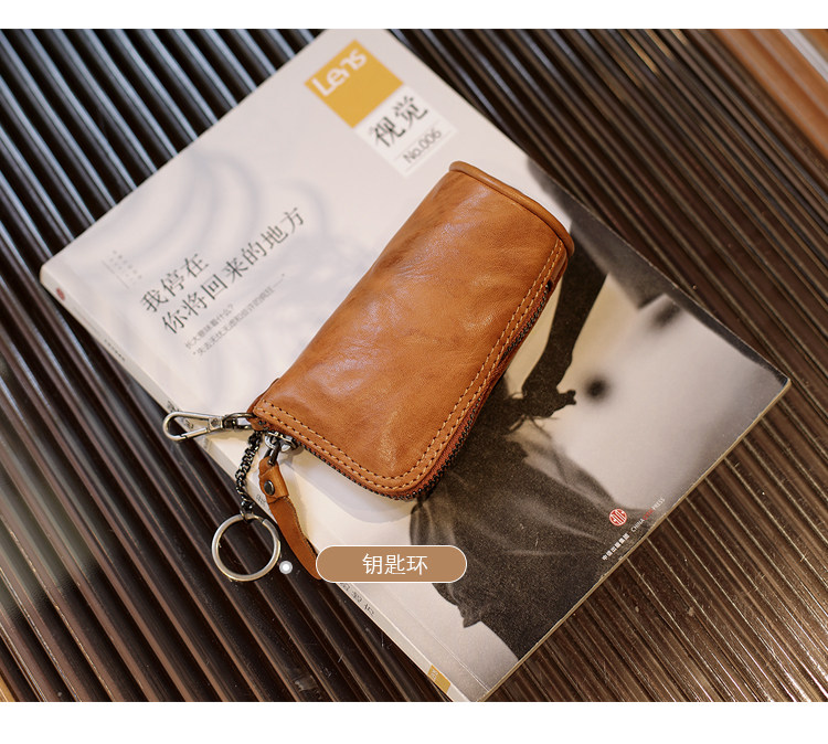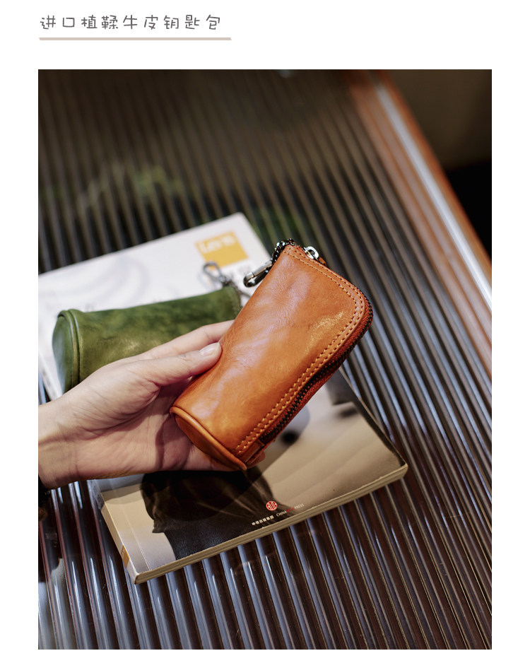 Модные трендовые ретро кожаные универсальные ключи от машины с молнией подходит для мужчин и женщин, сумка-органайзер, из натуральной кожи, воловья кожа