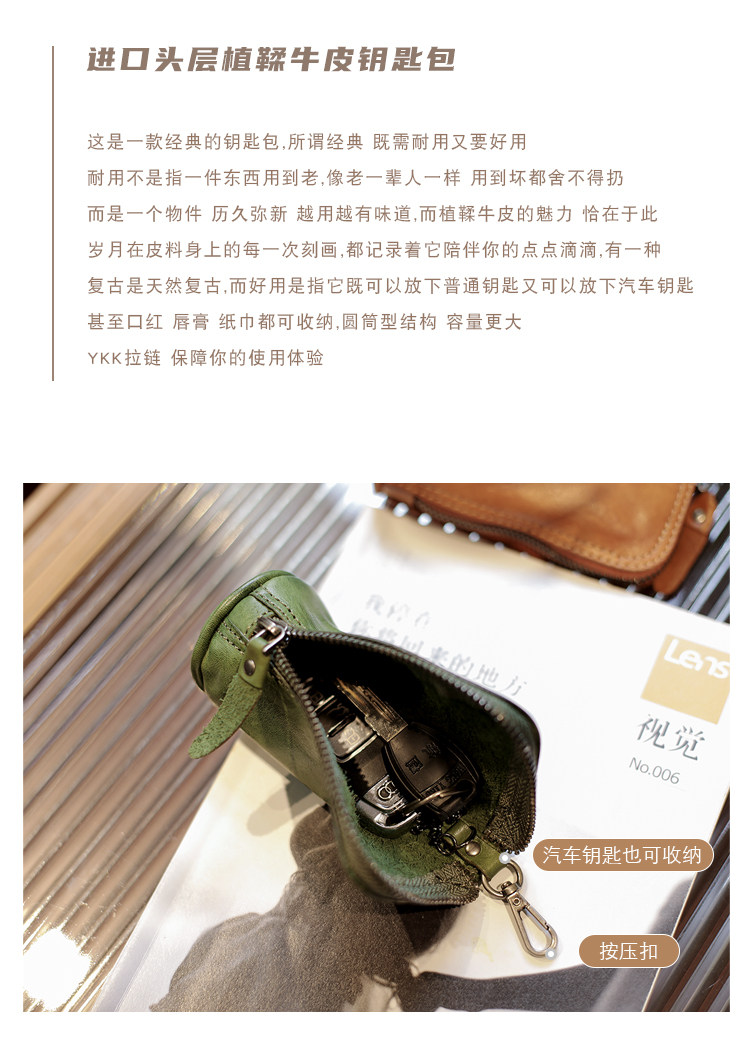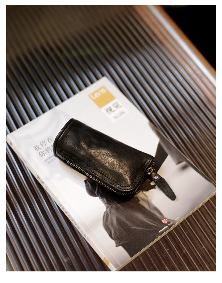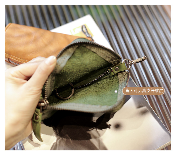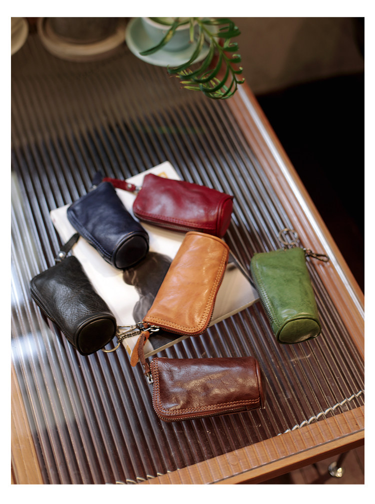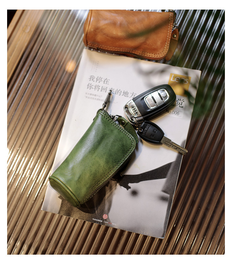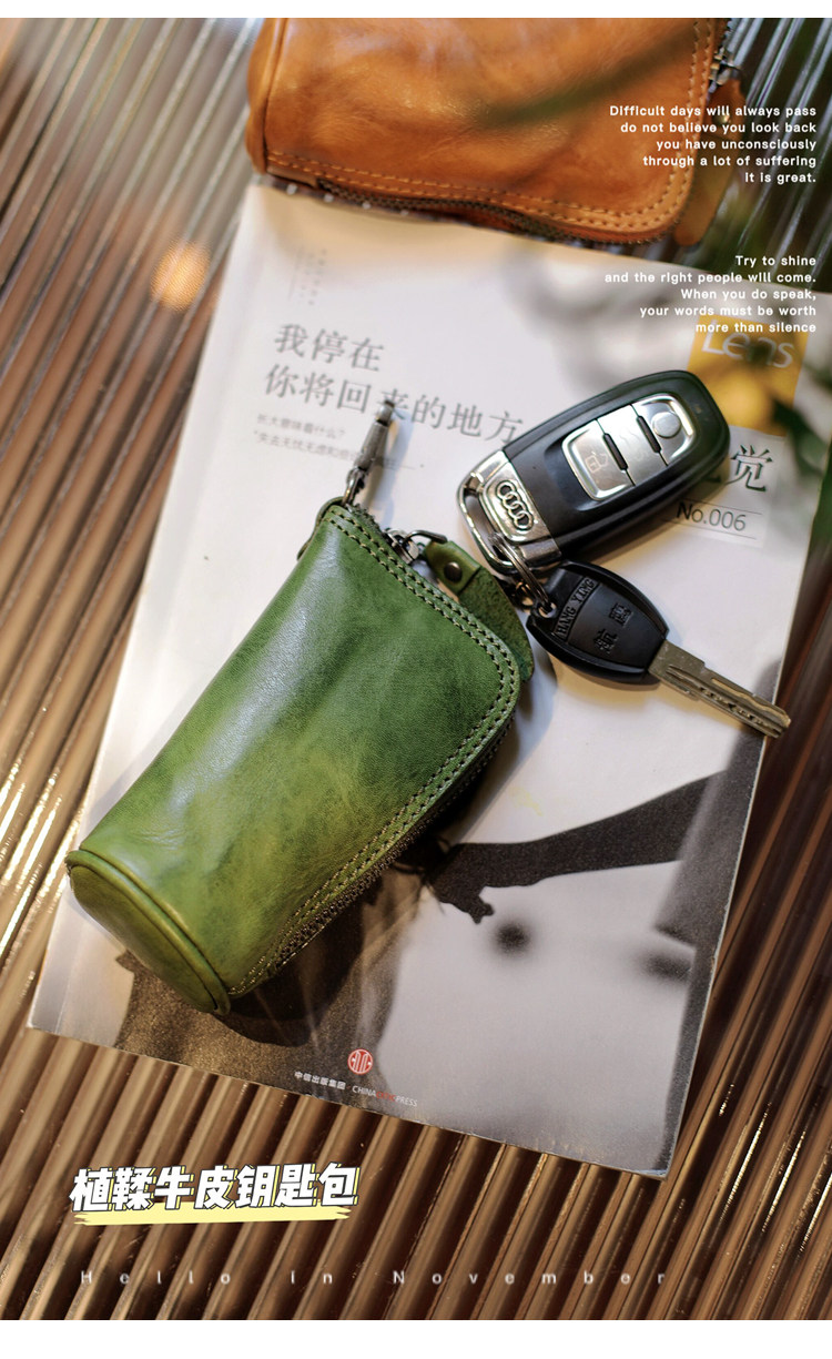 Модные трендовые ретро кожаные универсальные ключи от машины с молнией подходит для мужчин и женщин, сумка-органайзер, из натуральной кожи, воловья кожа