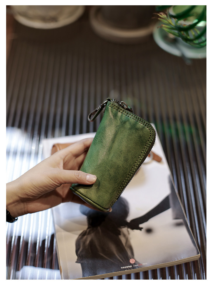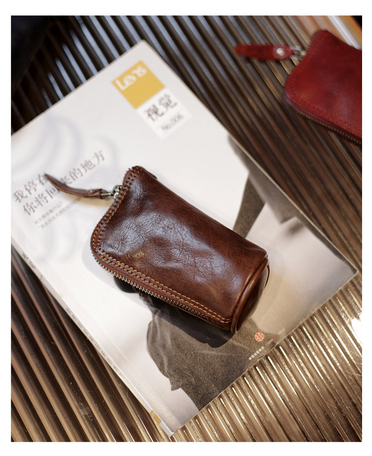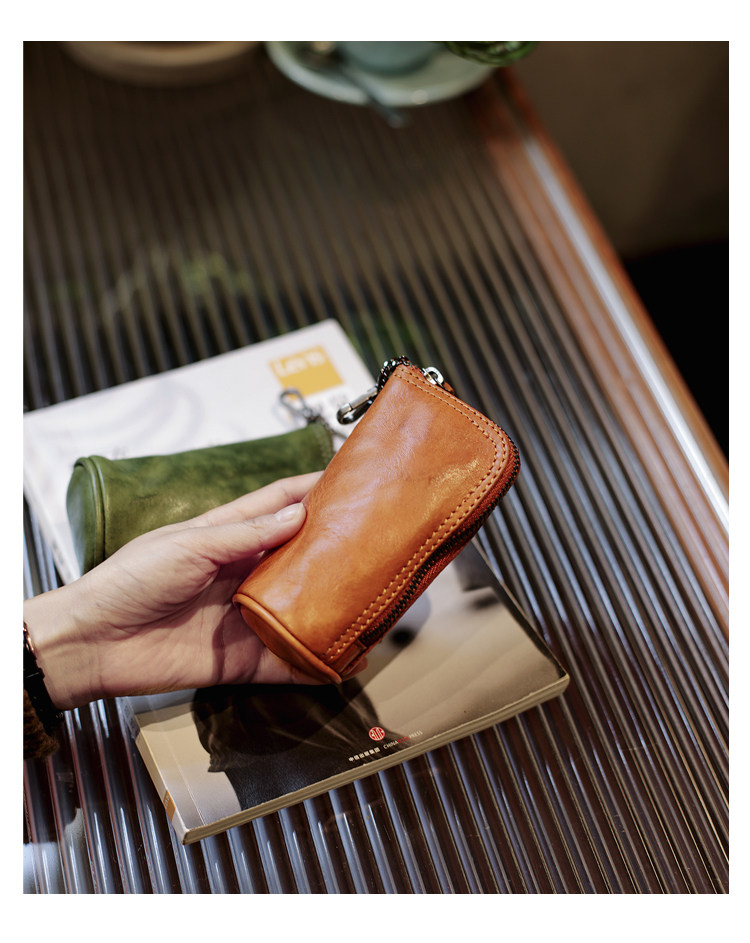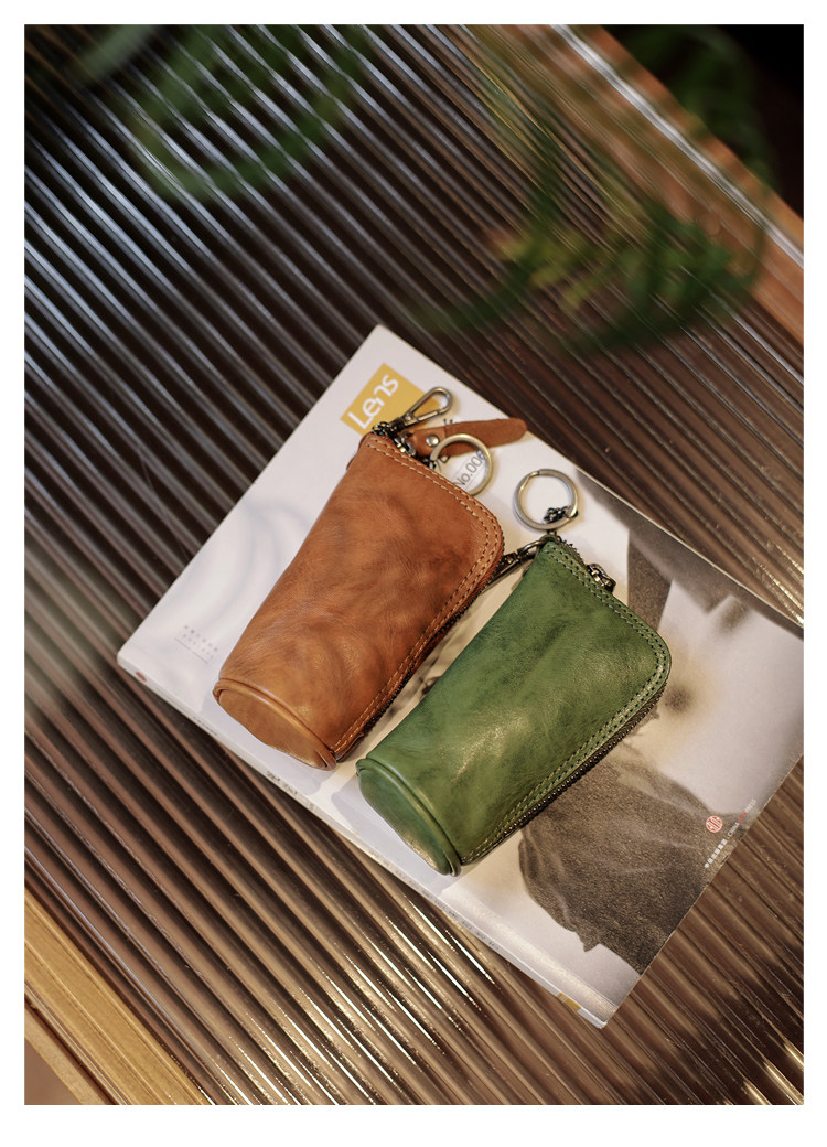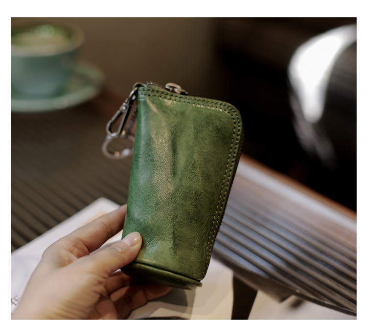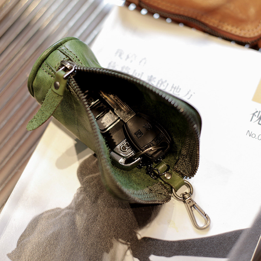 Модные трендовые ретро кожаные универсальные ключи от машины с молнией подходит для мужчин и женщин, сумка-органайзер, из натуральной кожи, воловья кожа