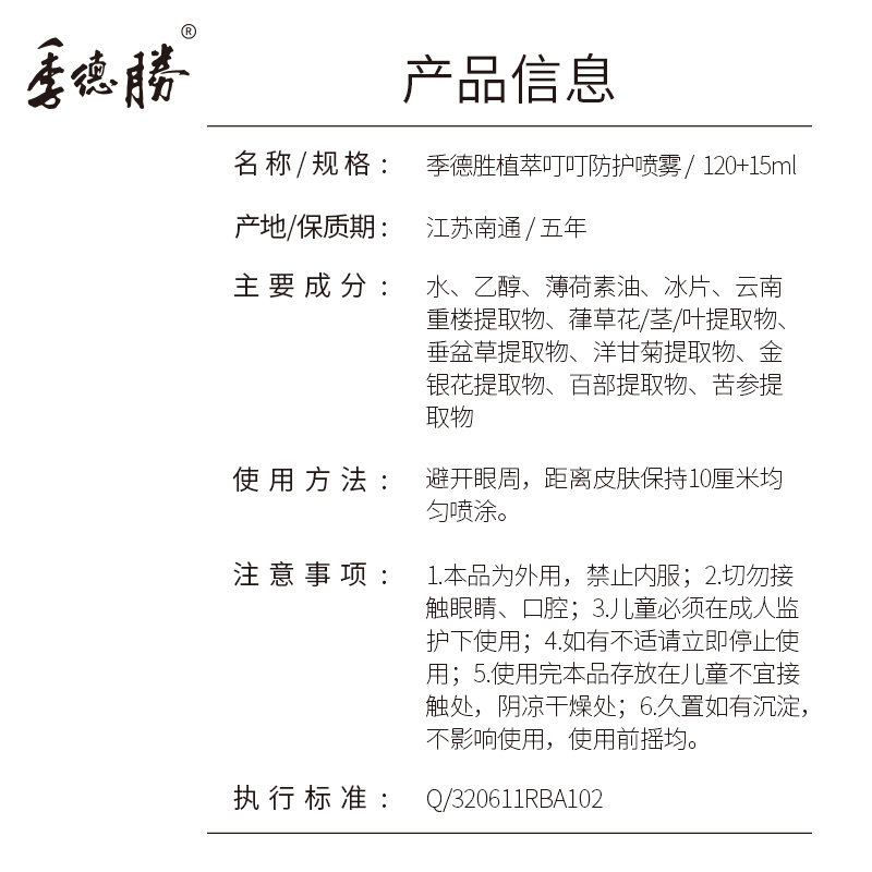 季德胜 Растительный экстракт для защиты от укусов, спрей для растений, летние комары на открытом воздухе