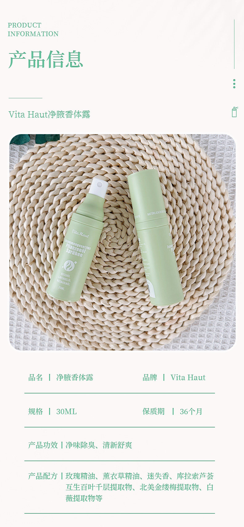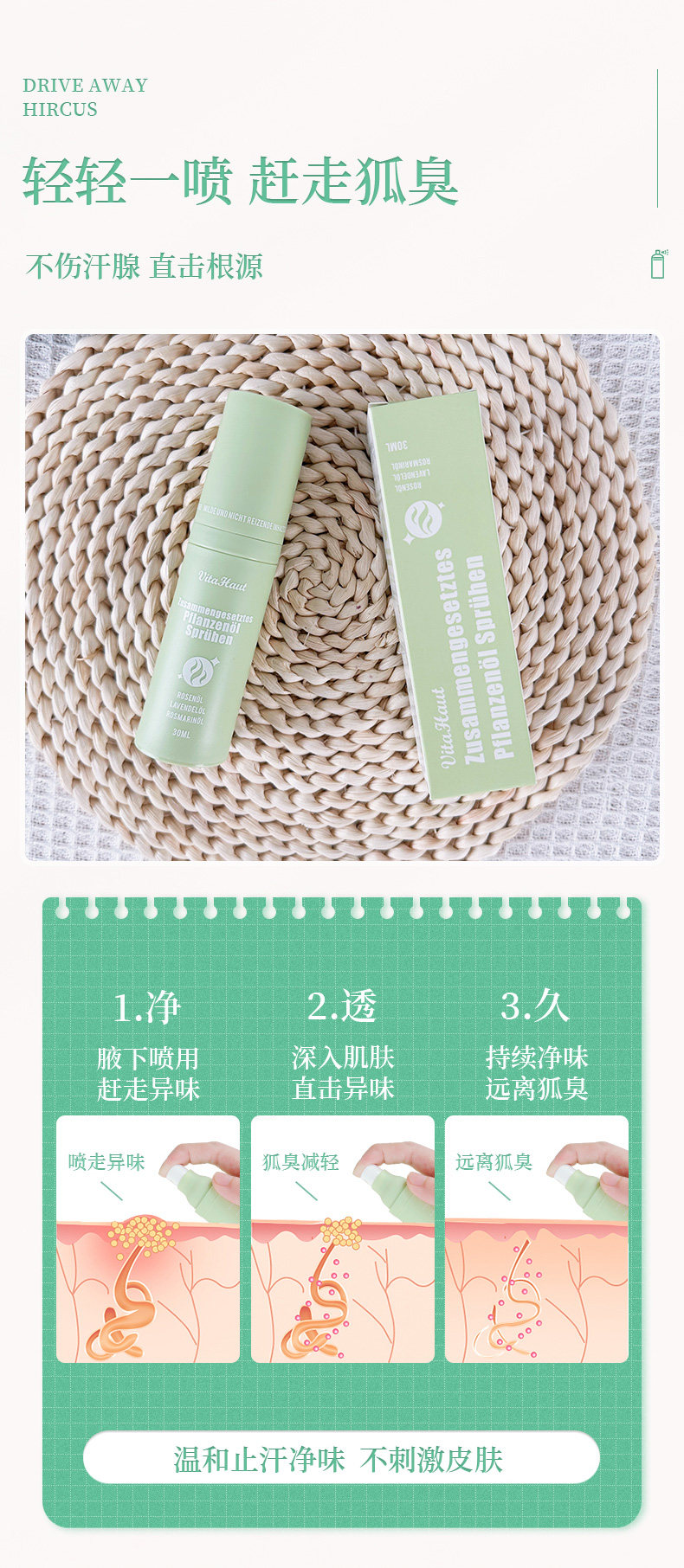 Германия Vita Haut Clean Axillary Arragrant Body выставило подмышешку, удалите запах, распылите вкус сетки, аромат лисы водного аромата