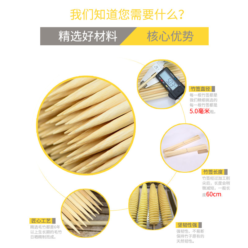 Картофельная башня бамбуковой выбор 60 см*5 мм300 Жареный одноразовый