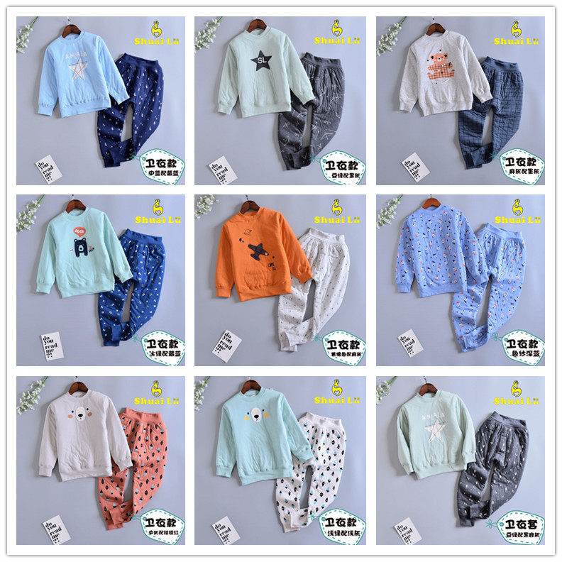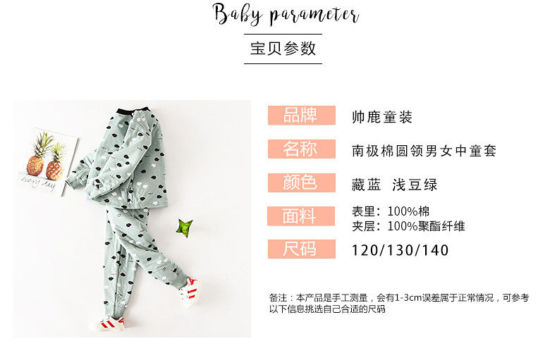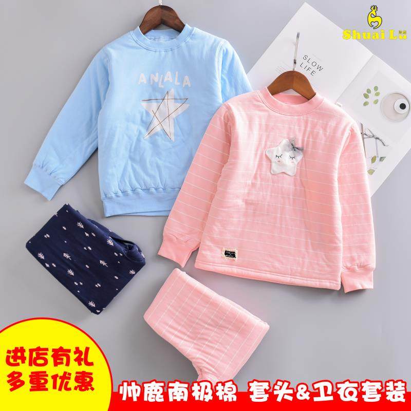 帅鹿 Комплект подходит для мужчин и женщин, детское удерживающее тепло зимнее нижнее белье, хлопковая стеганая куртка, комбинезон, детская одежда, увеличенная толщина, подходит для подростков
