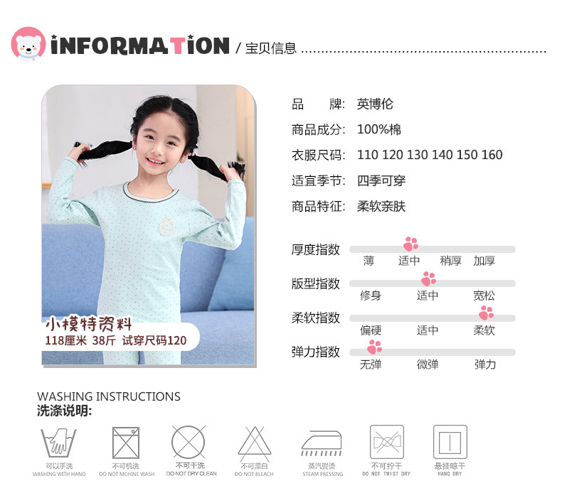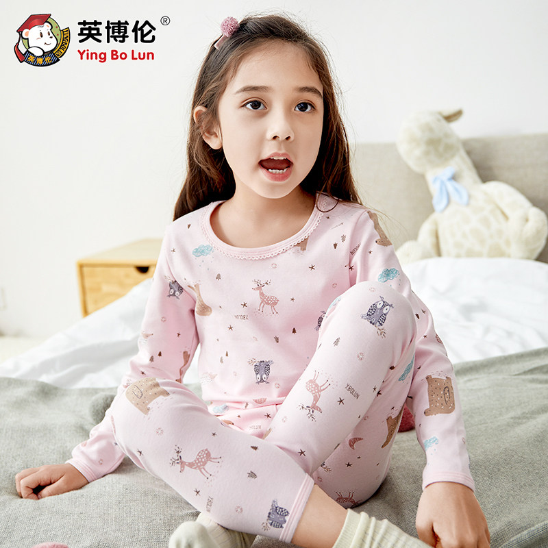 英博伦 Осеннее детское нижнее белье, комплект, хлопковое термобелье, хлопковая тонкая пижама, подходит для подростков