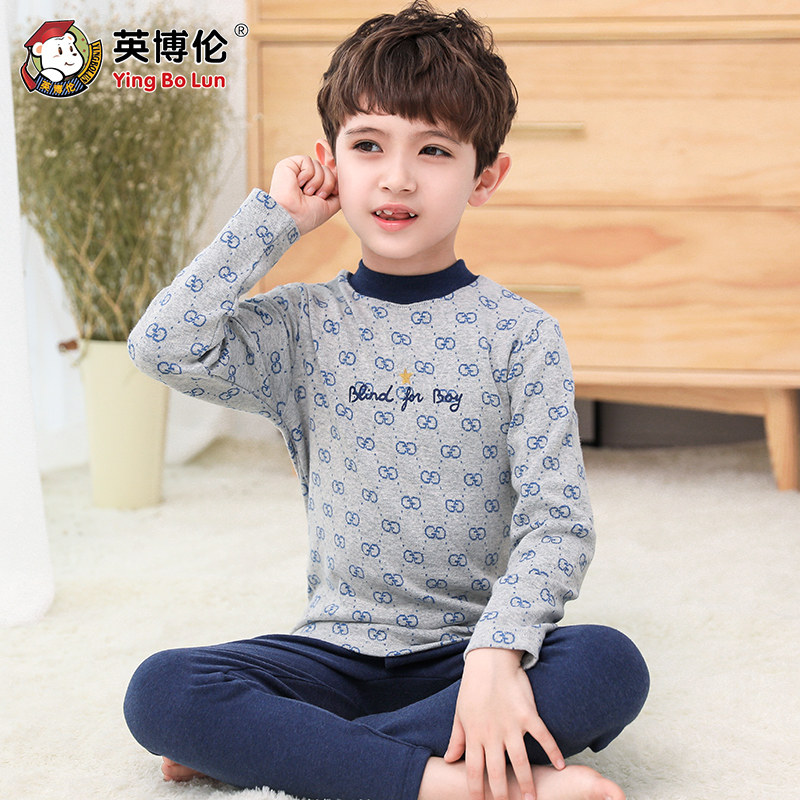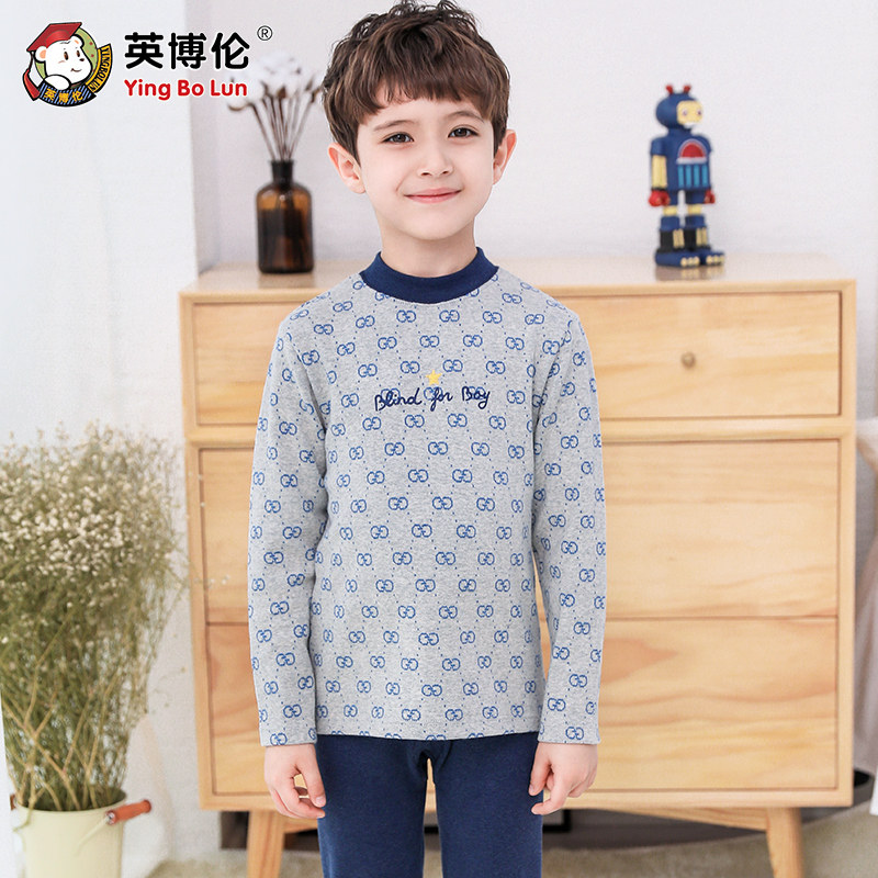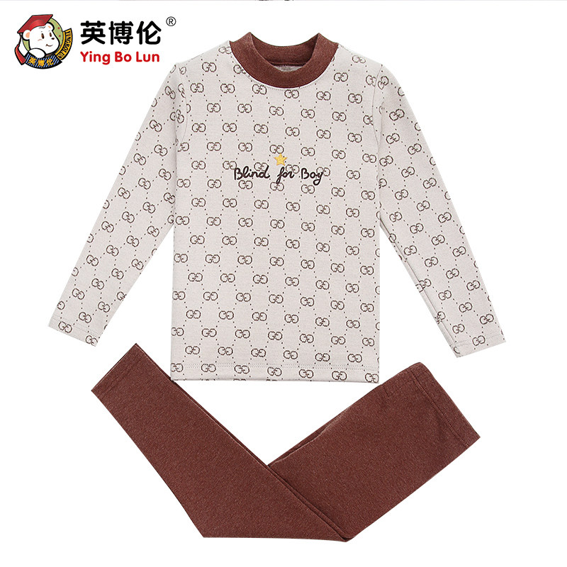 英博伦 Зимнее нижнее белье для мальчиков, бархатный комплект, детская удерживающая тепло утепленный лонгслив, термобелье, свитер, подходит для подростков, увеличенная толщина