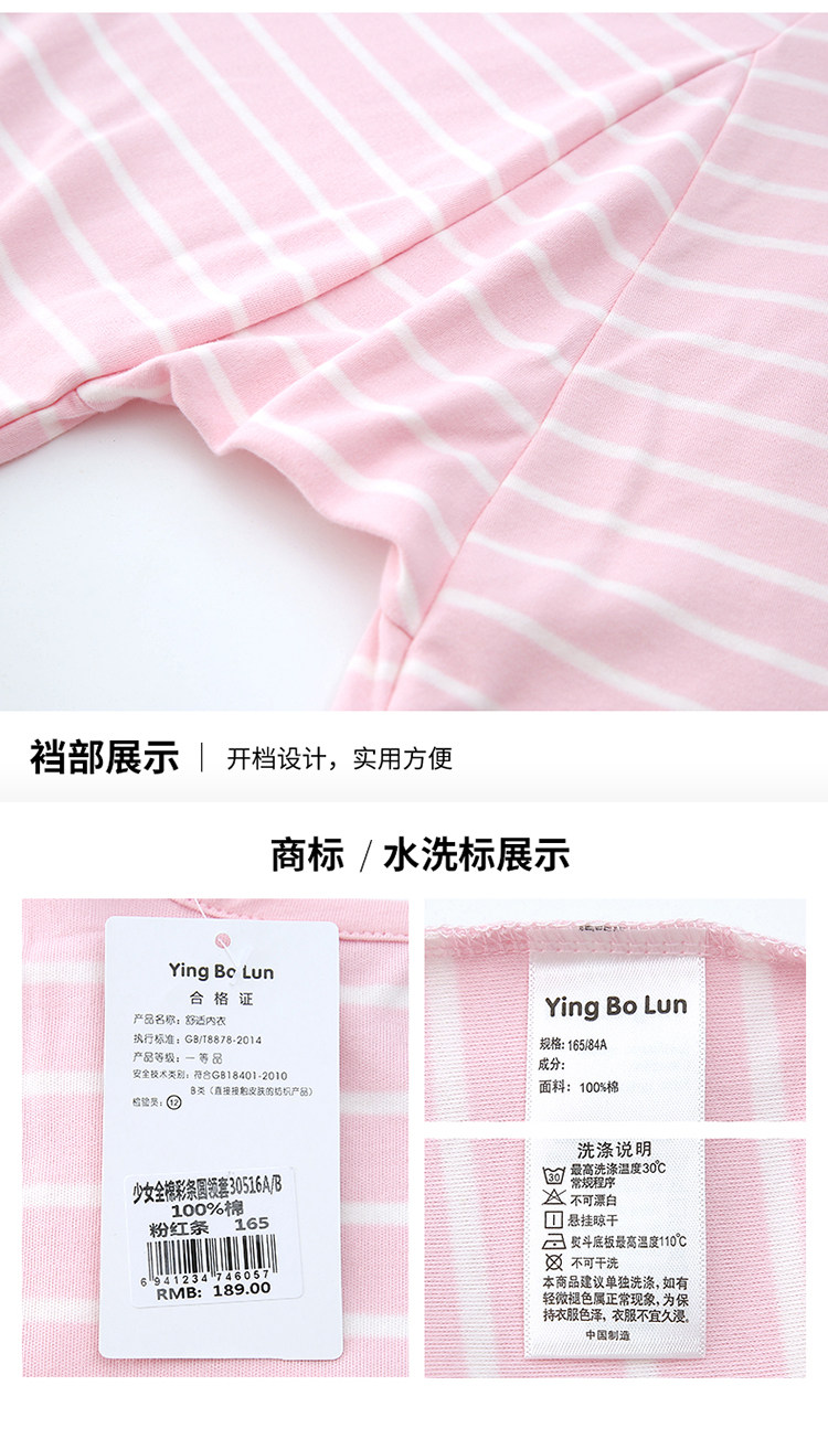 英博伦 Нижнее белье, хлопковый комплект, детское термобелье, тонкая хлопковая пижама, подходит для подростков, 12-15 лет