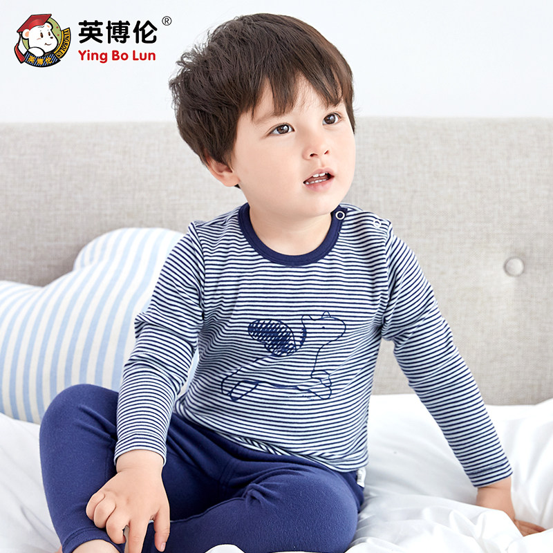 英博伦 Демисезонное детское нижнее белье, комплект для мальчиков, хлопковая удерживающая тепло утепленный лонгслив, термобелье, детская тонкая пижама