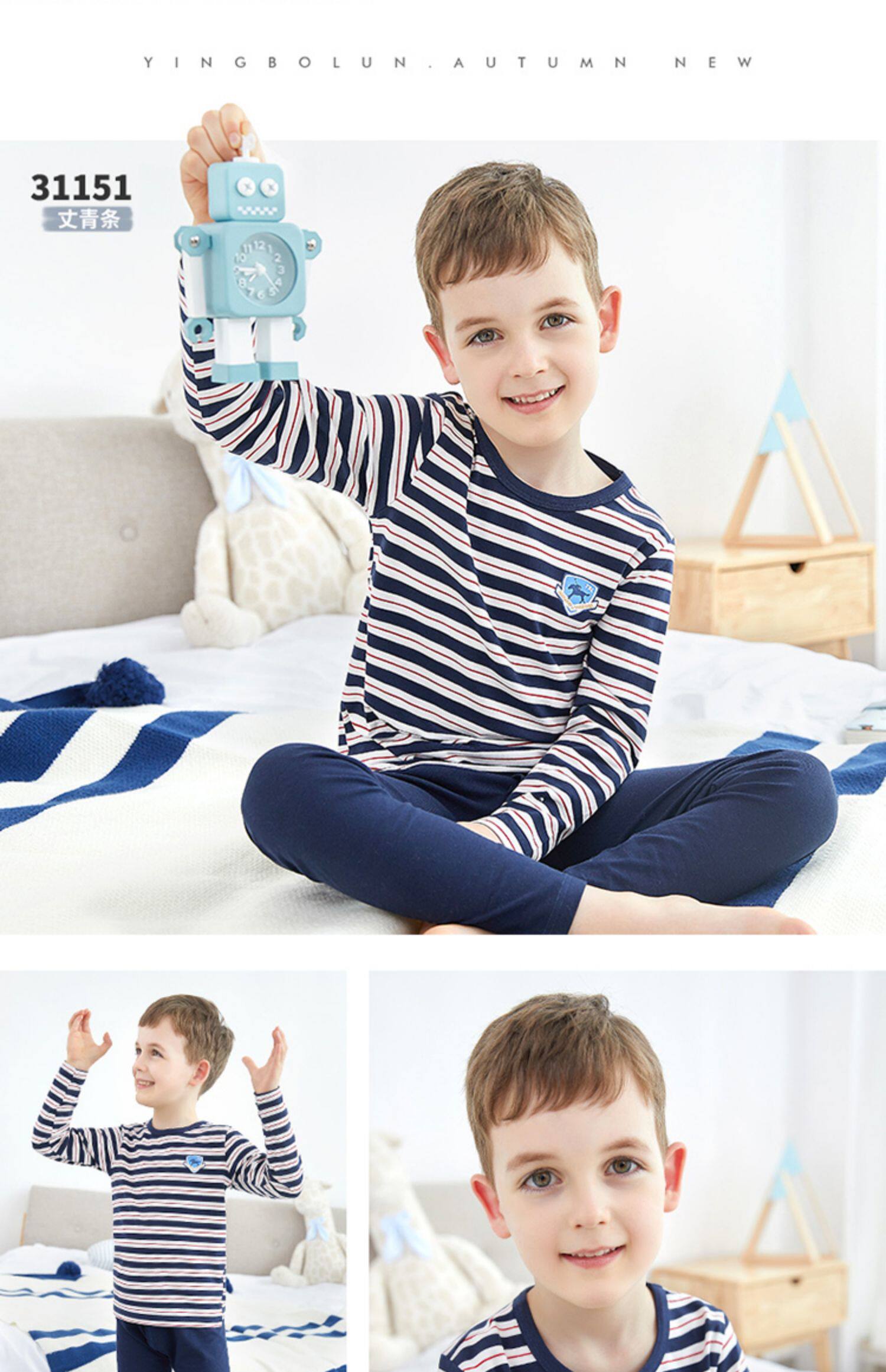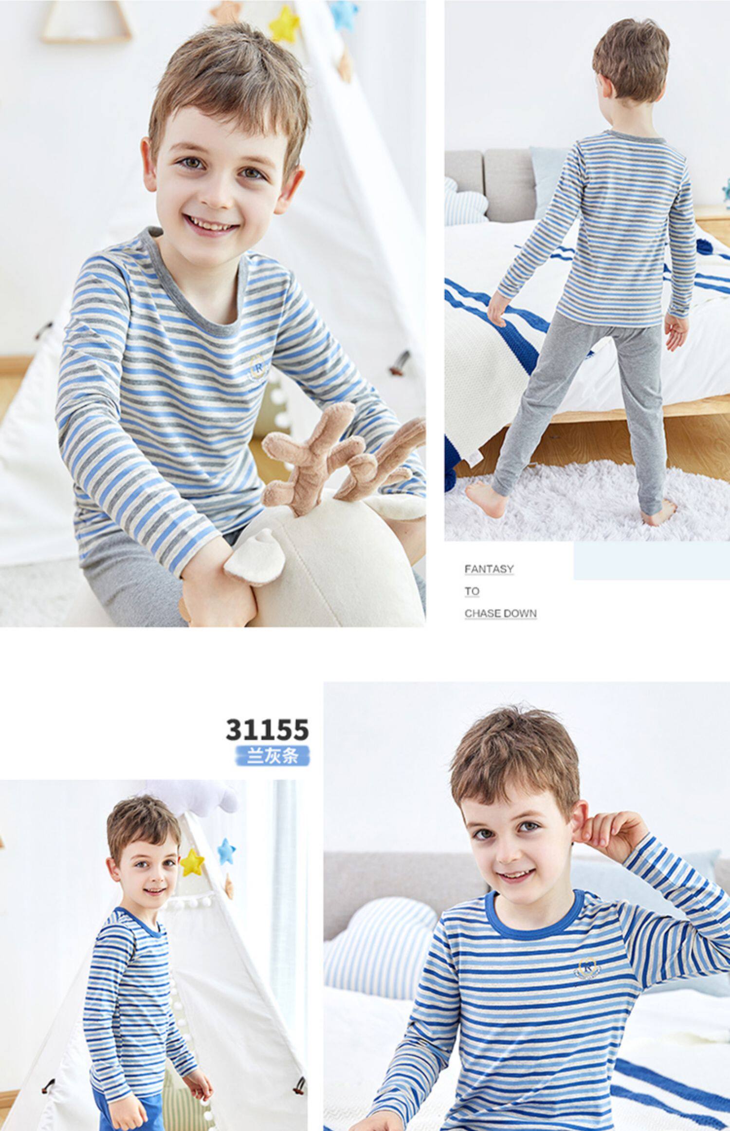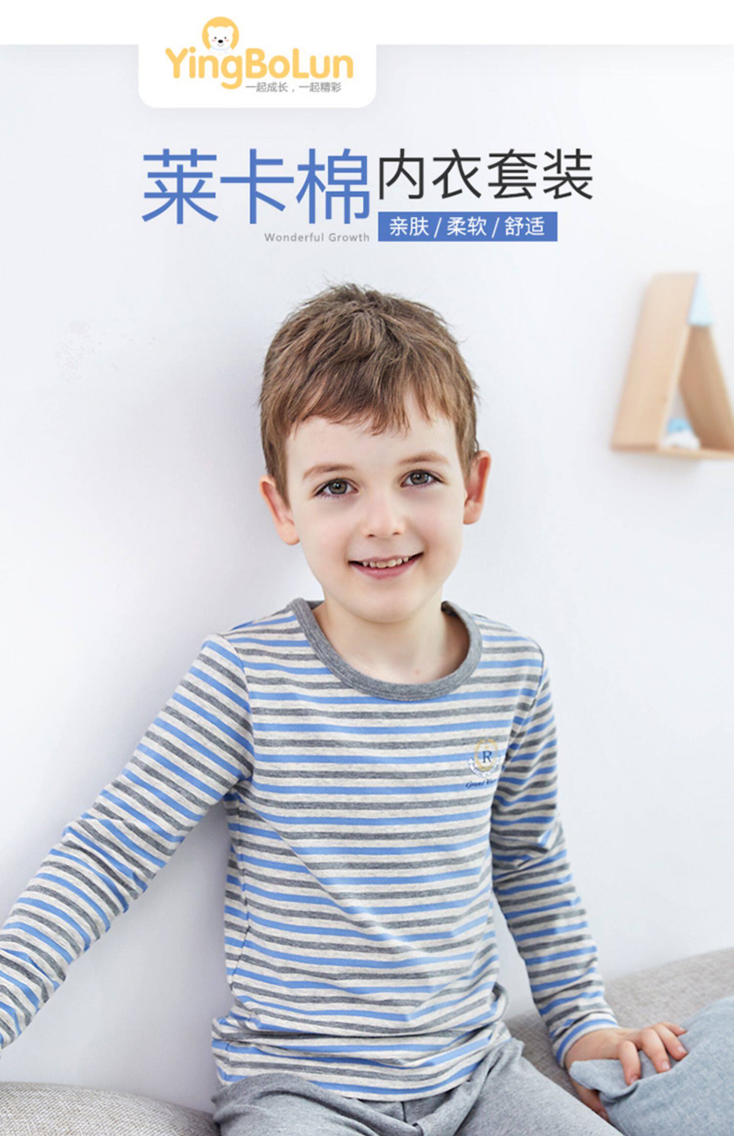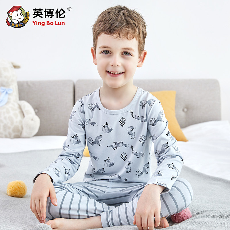 英博伦 Детское нижнее белье, хлопковый комплект, термобелье для мальчиков, тонкая пижама, подходит для подростков