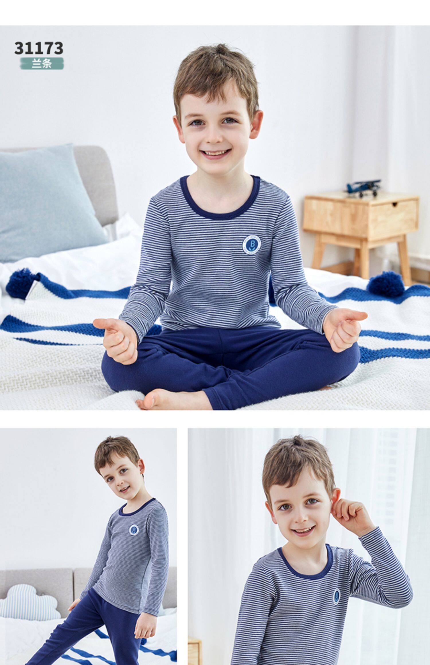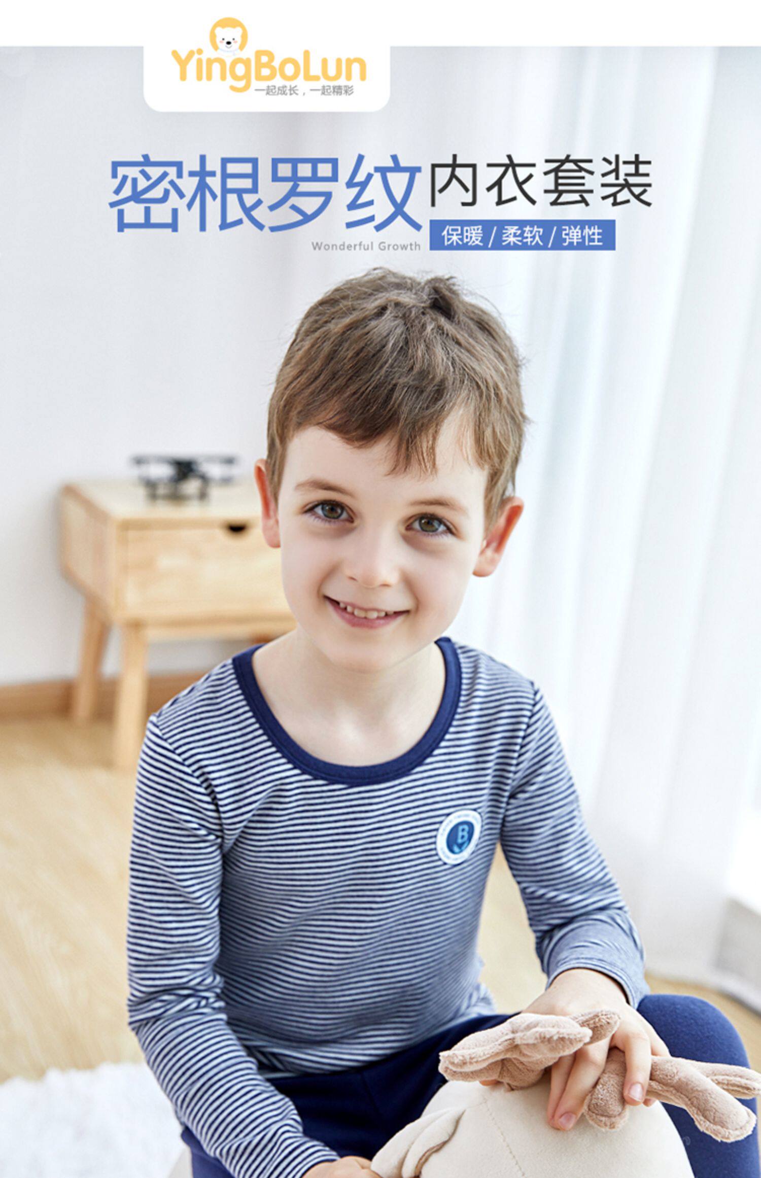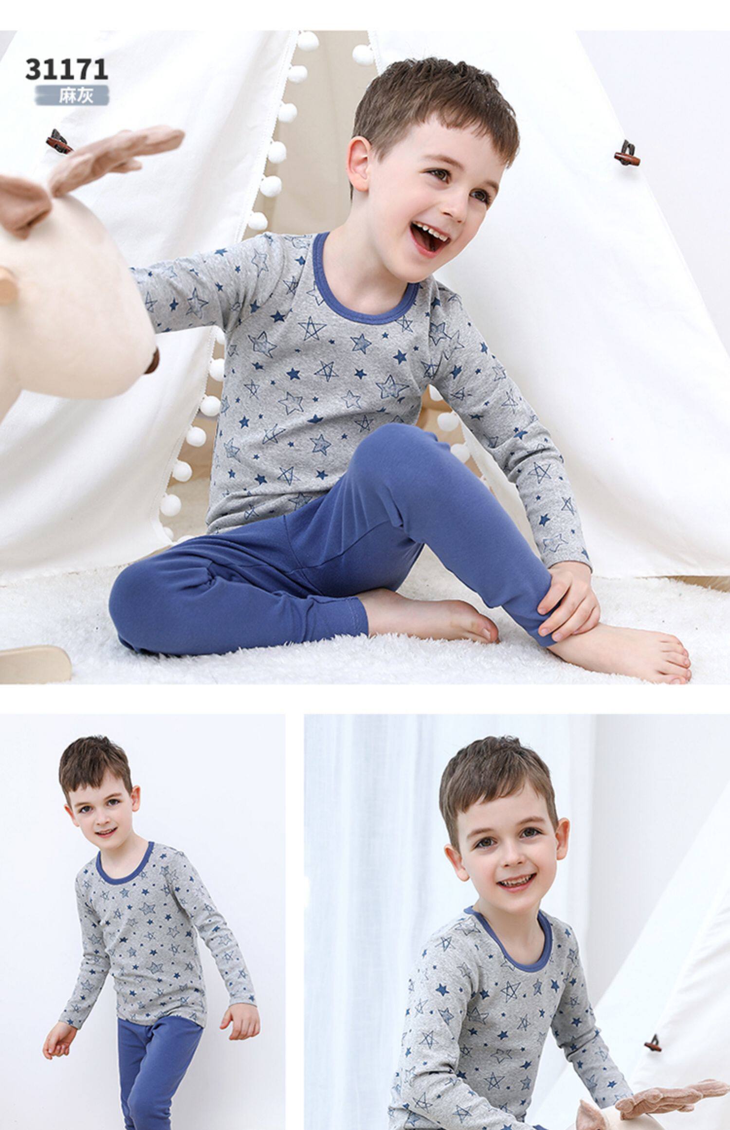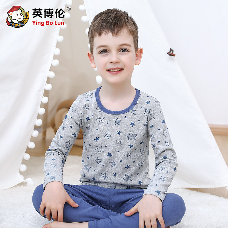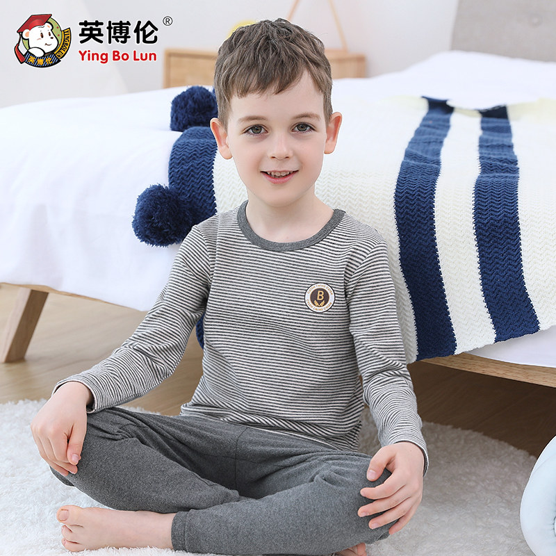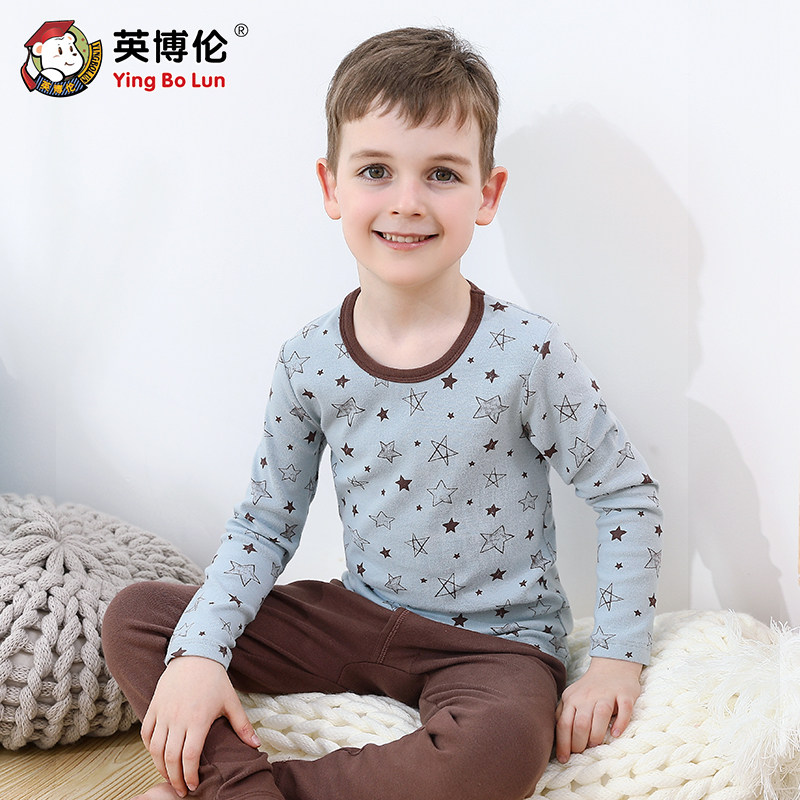 英博伦 Нижнее белье для мальчиков, хлопковый комплект, термобелье, детская тонкая пижама, подходит для подростков