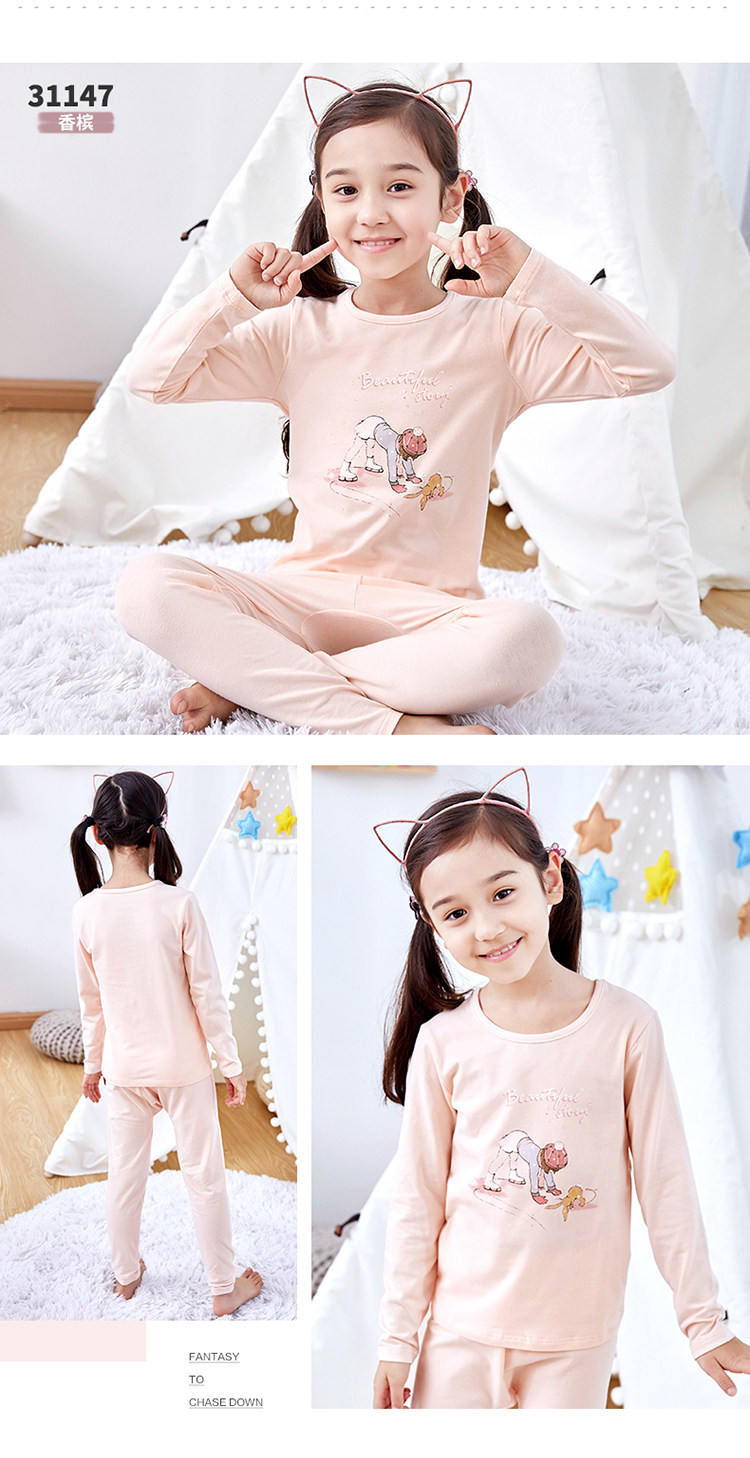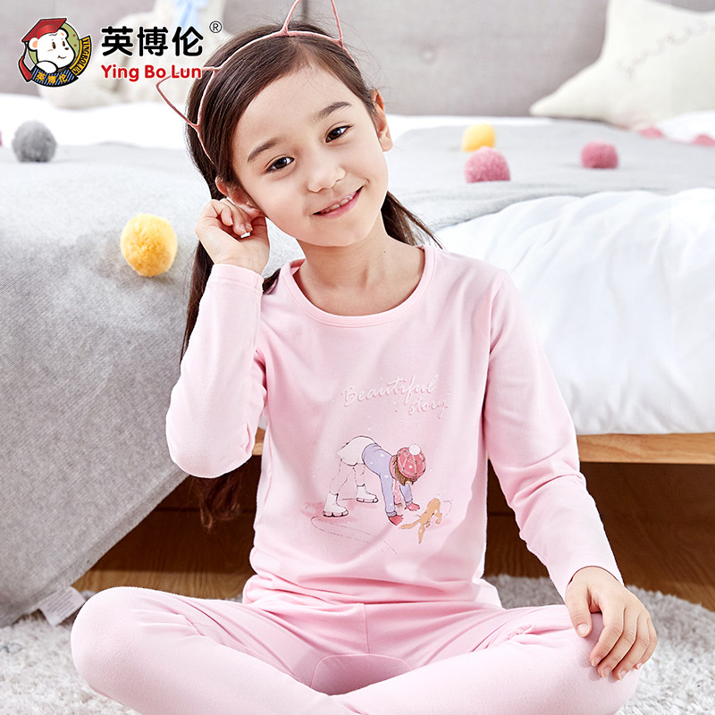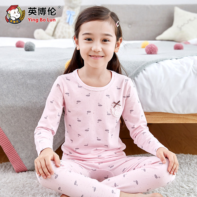 英博伦 Демисезонное нижнее белье, хлопковый комплект, детское термобелье, тонкая пижама, подходит для подростков