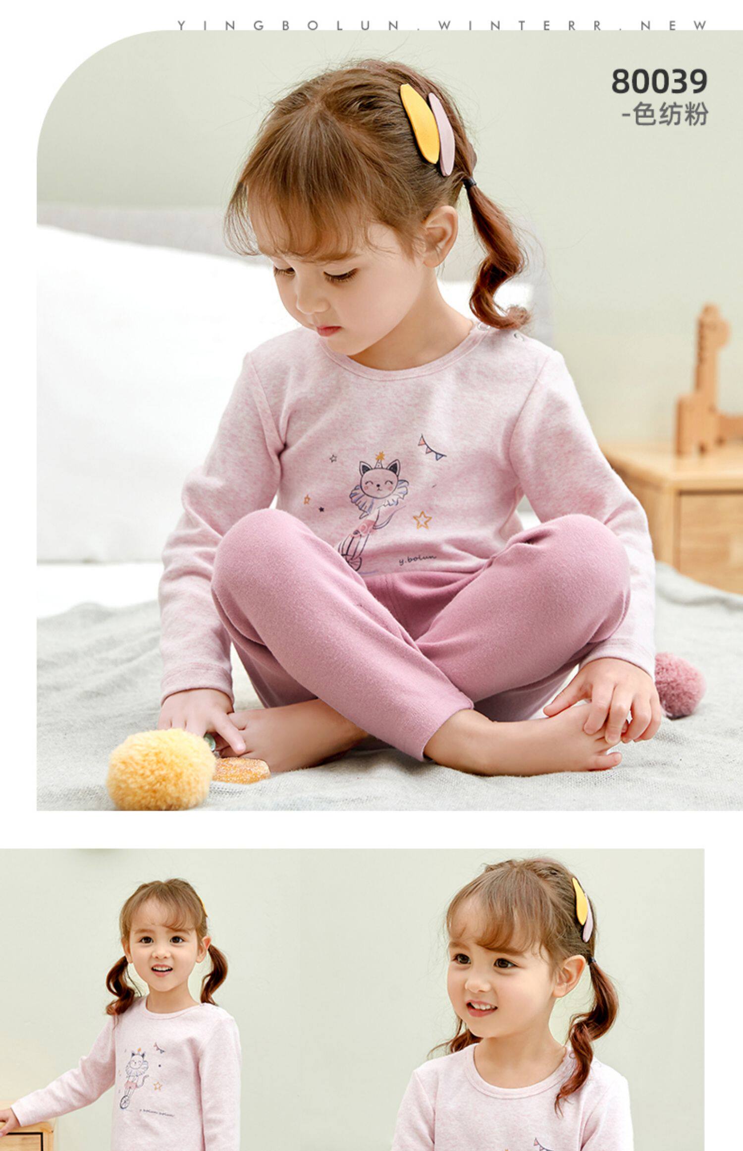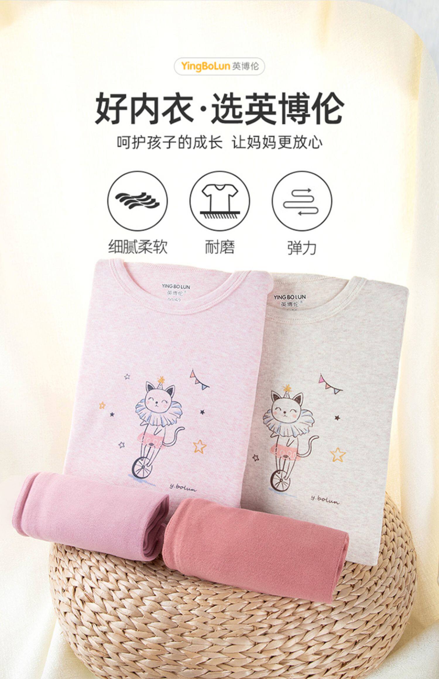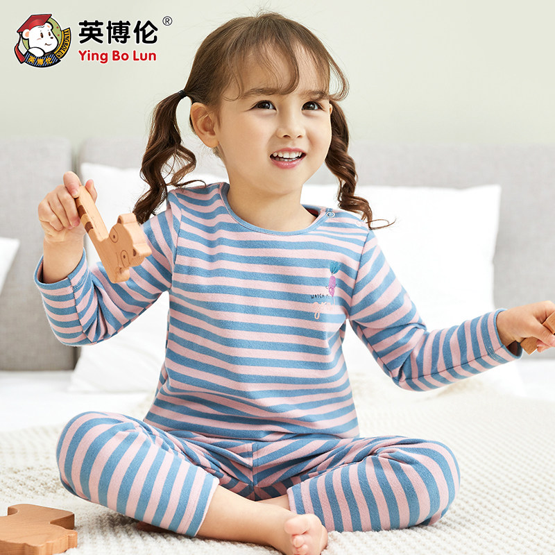 英博伦 Детское осеннее нижнее белье, демисезонный хлопковый комплект, тонкое термобелье, удерживающая тепло пижама
