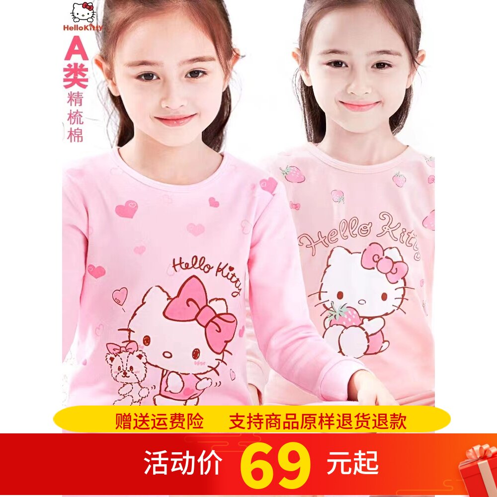 Hello kitty, Hello Kitty, нижнее белье, хлопковый детский комплект, термобелье, штаны, осенняя пижама