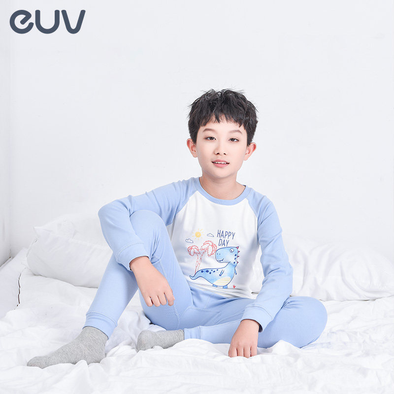 euv Детское термобелье, хлопковое нижнее белье, комплект для мальчиков, динозавр, свитер, штаны, подходит для подростков