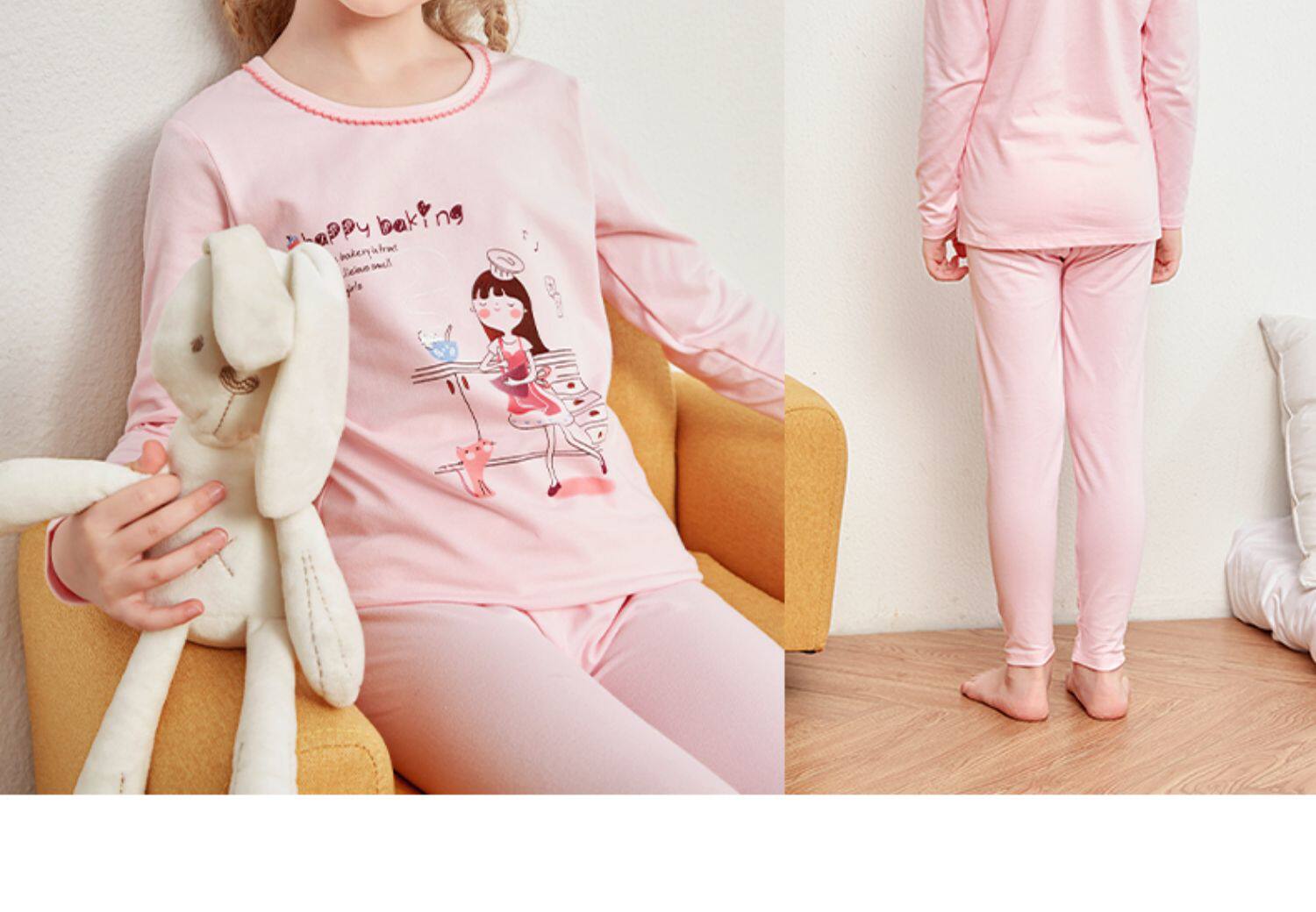 Демисезонное нижнее белье, хлопковый комплект, детское термобелье, пижама, подходит для подростков