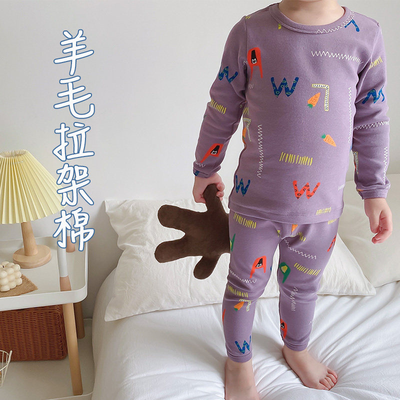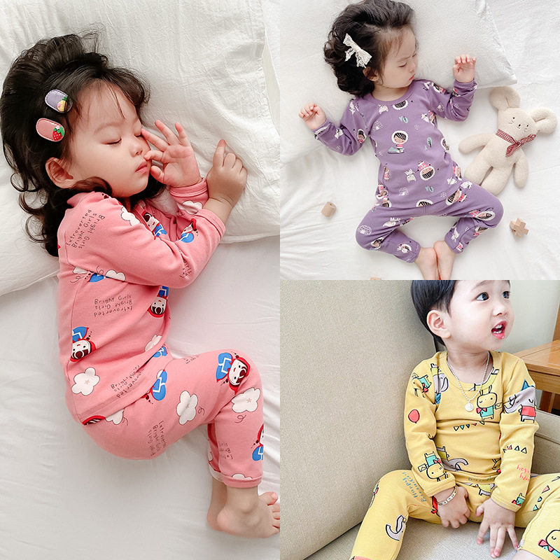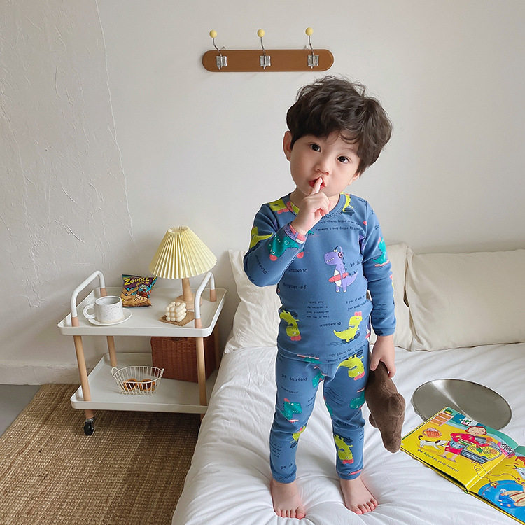 Детское хлопковое термобелье, утепленное нижнее белье, комплект подходит для мужчин и женщин, мультяшная демисезонная детская пижама