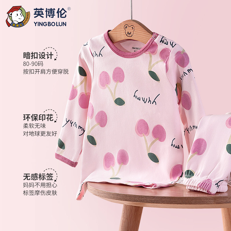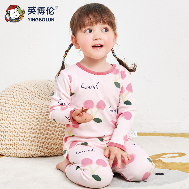 英博伦 Осеннее нижнее белье для девочек, хлопковый комплект, тонкое хлопковое термобелье, детский свитер