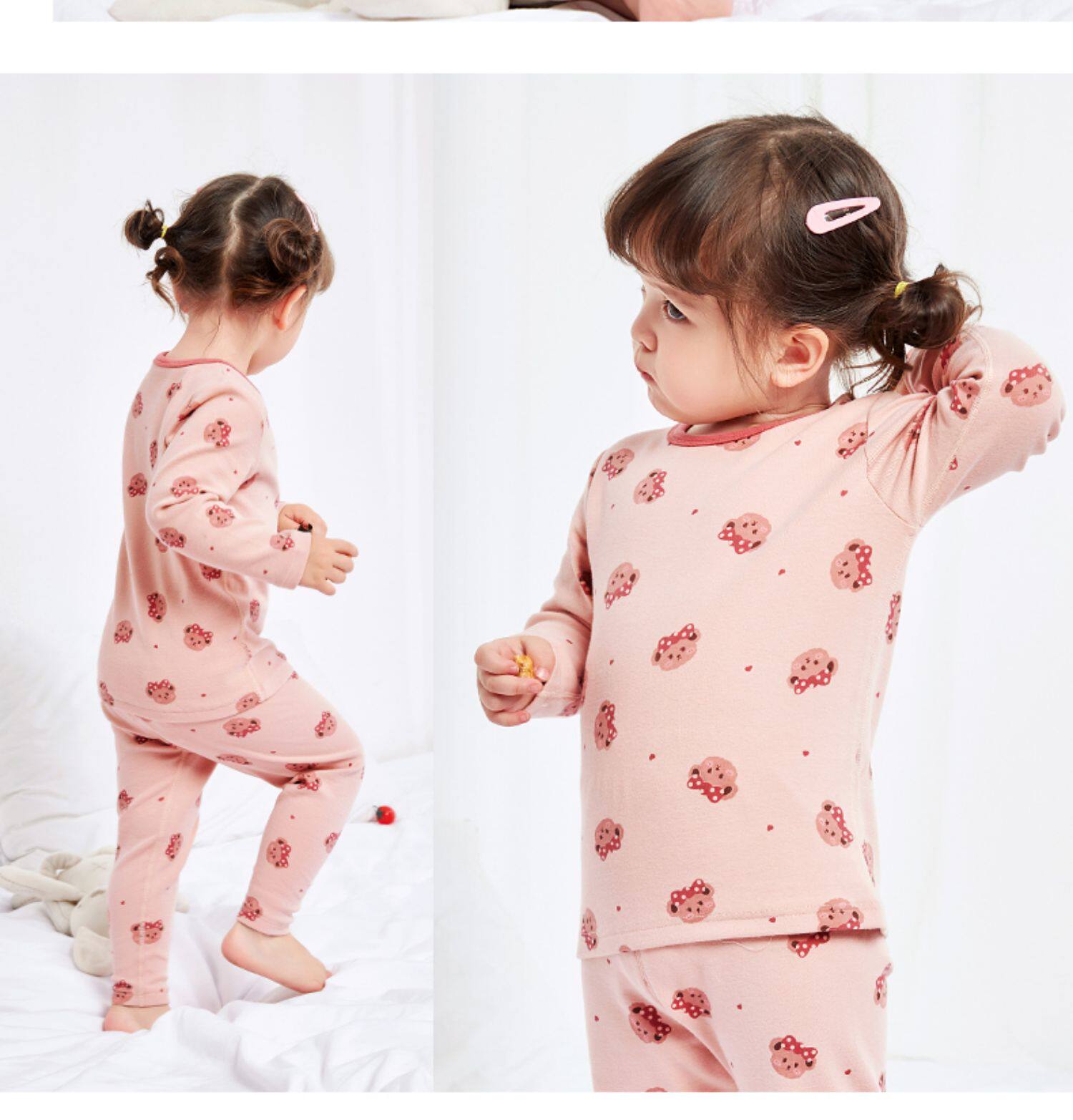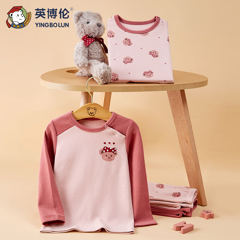 Нижнее белье для девочек, хлопковый мультяшный комплект, детская удерживающая тепло утепленный лонгслив, тонкое термобелье, пижама
