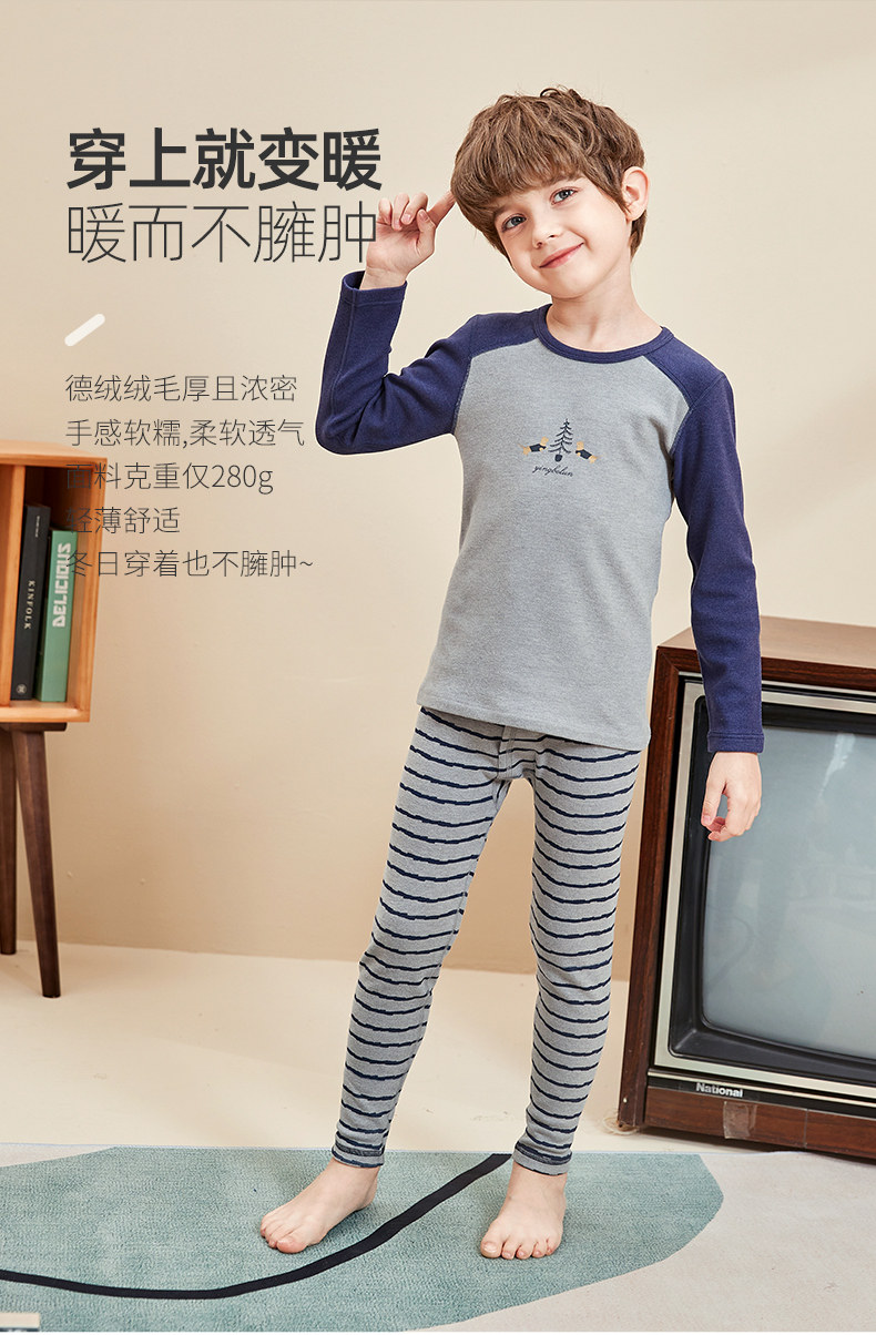 Нижнее белье для мальчиков, удерживающий тепло бархатный комплект, термобелье, базовый свитер, увеличенная толщина