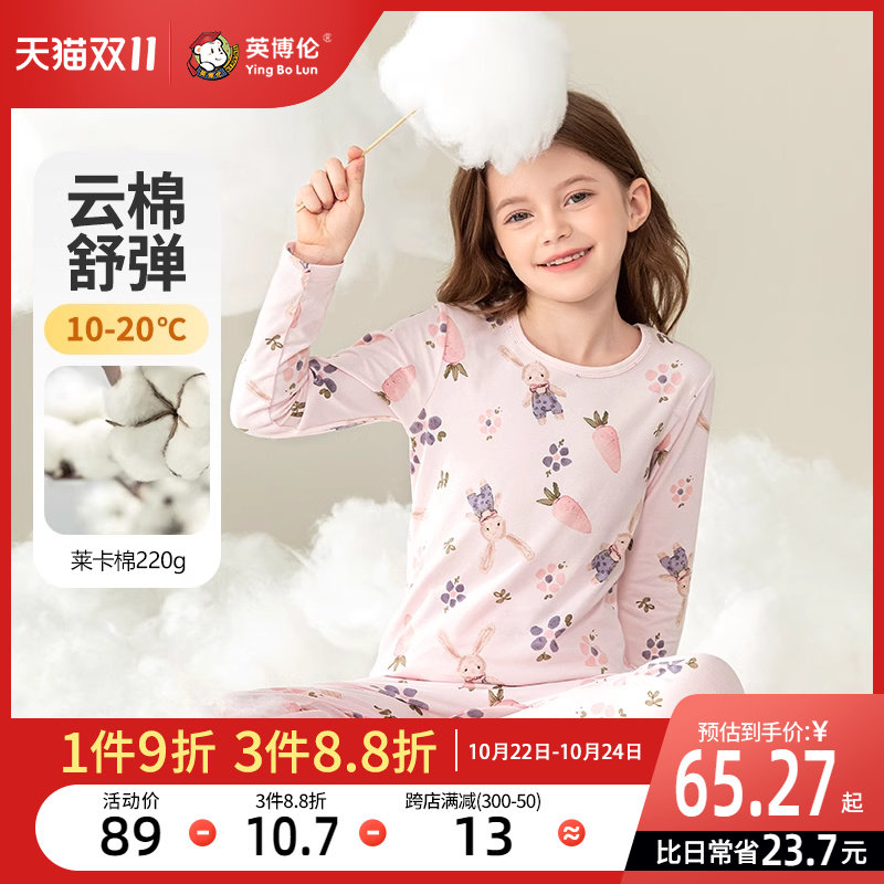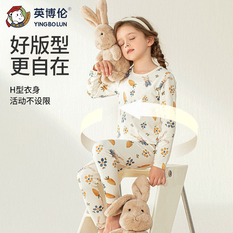 英博伦 Нижнее белье, хлопковый комплект, детское термобелье, тонкая пижама, подходит для подростков