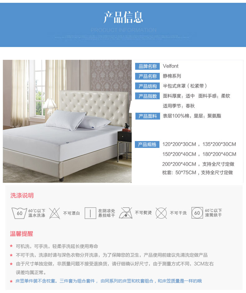 | Размеры простыней/кроватей: | 120×200см, 30см, 135×200см, 30см, 150×200см, 40см, 180×200см, 40см, 200×200см, 40см, Индивидуальный размер (размер сообщения заказать или свяжитесь с обслуживанием клиентов) |