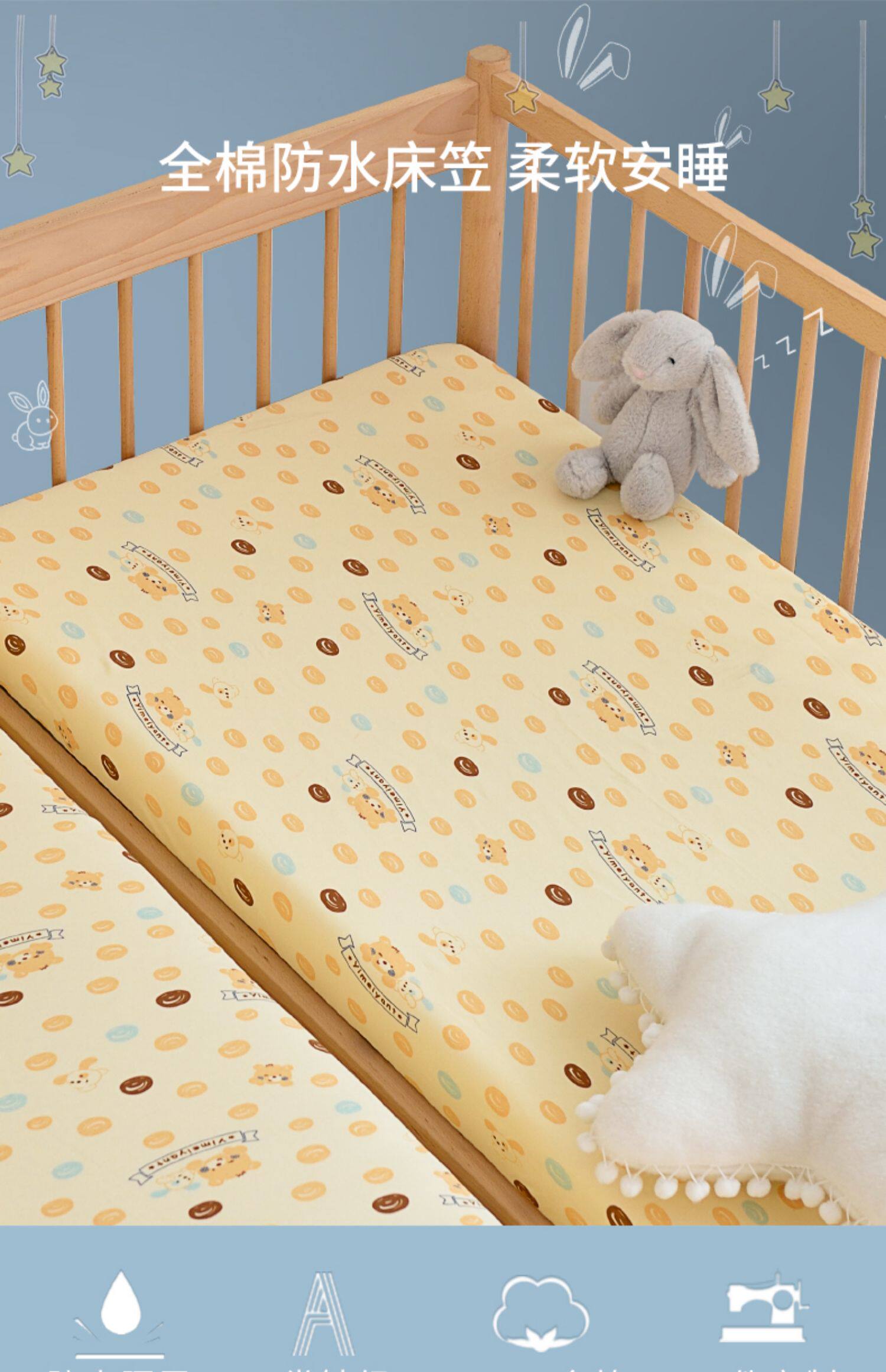 森柔 Детская хлопковая защитная простыня для новорожденных, водонепроницаемое дышащее хлопковое покрывало для младенца